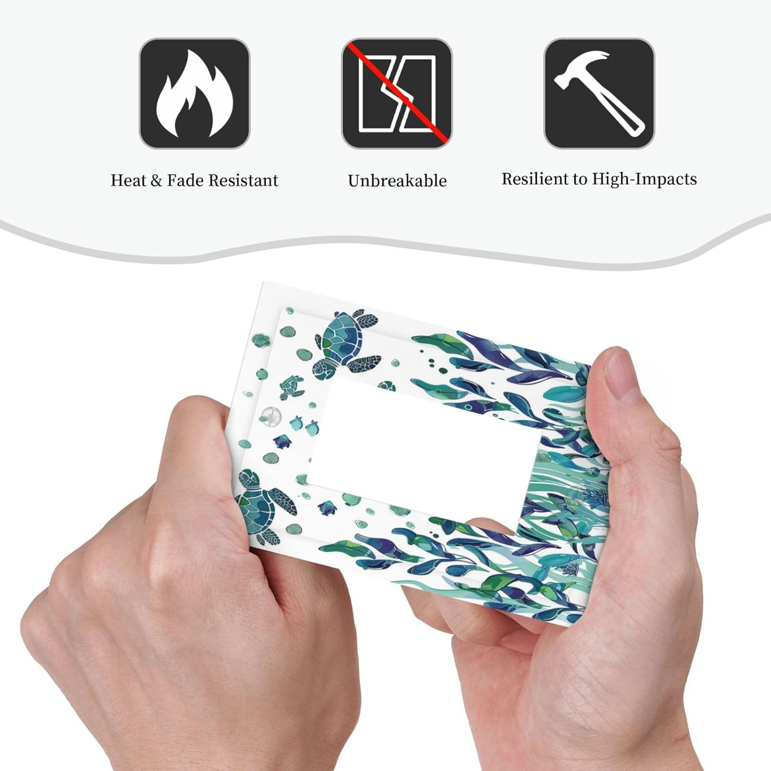 Decorative Outlet Covers Vibrant Turtle Seagrass Watercolor Painting 1 Gang Single Rocker Light Switch Cover Plate Wall Plates GFCI Faceplate for Bathroom living Room Decor