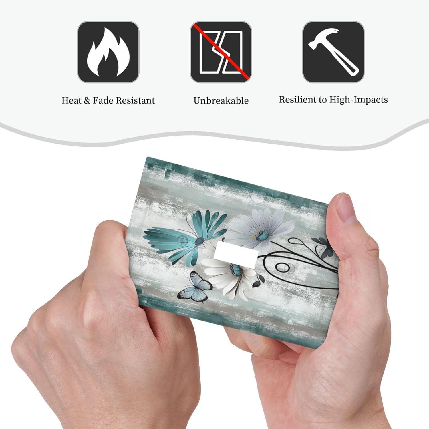 Decorative Light Switch Cover Rustic Teal Daisy Floral Flowers Butterfly Wood Grain 1 Gang Single Toggle Device Electrical Faceplate Switchplates Decorator Outlet Wall Plate for Bathroom
