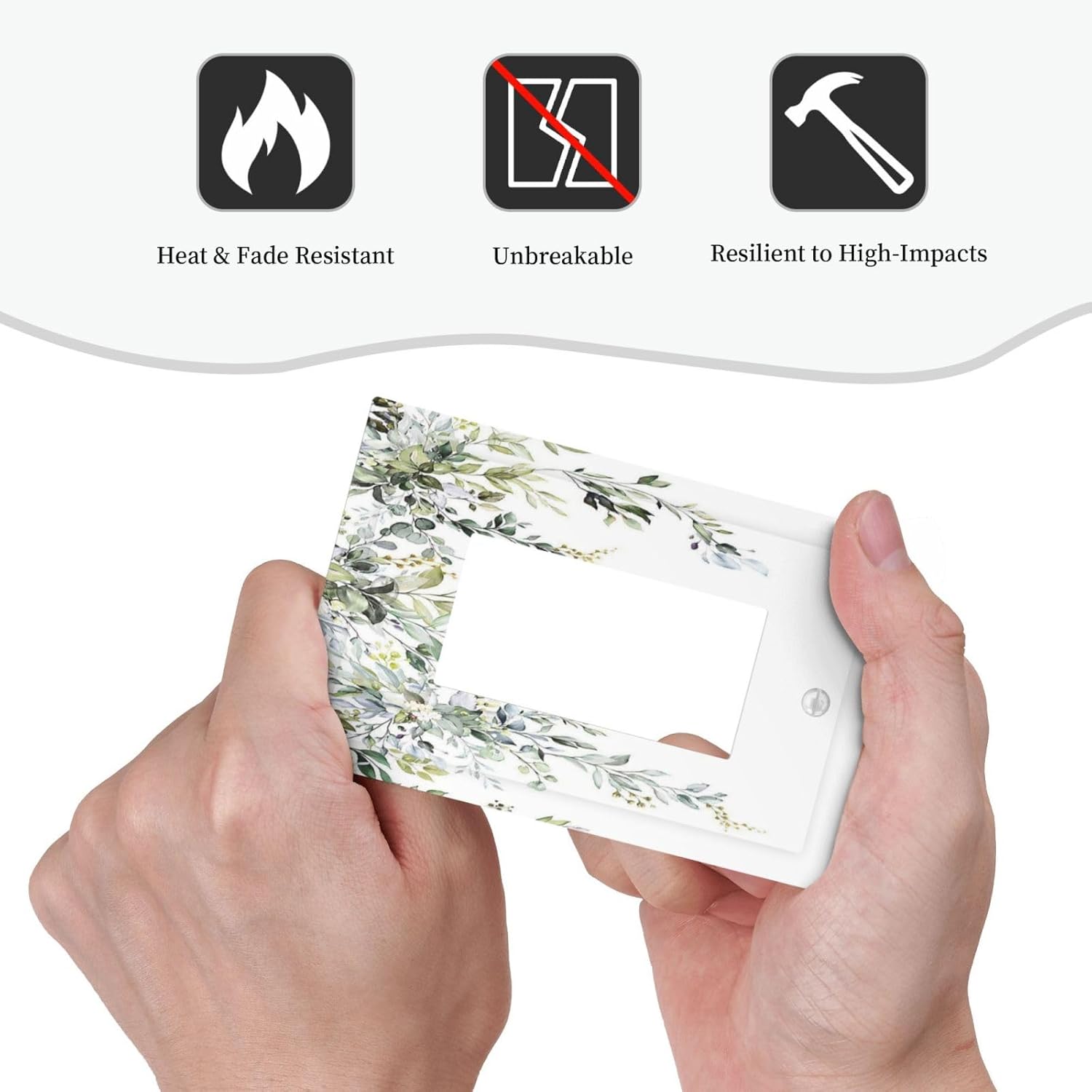 Decorative Outlet Covers Boho Farmhouse Flower Leaf Sage Green 1 Gang Single Rocker Light Switch Cover Plate Wall Plates GFCI Faceplate for Bedroom Cabin Decor