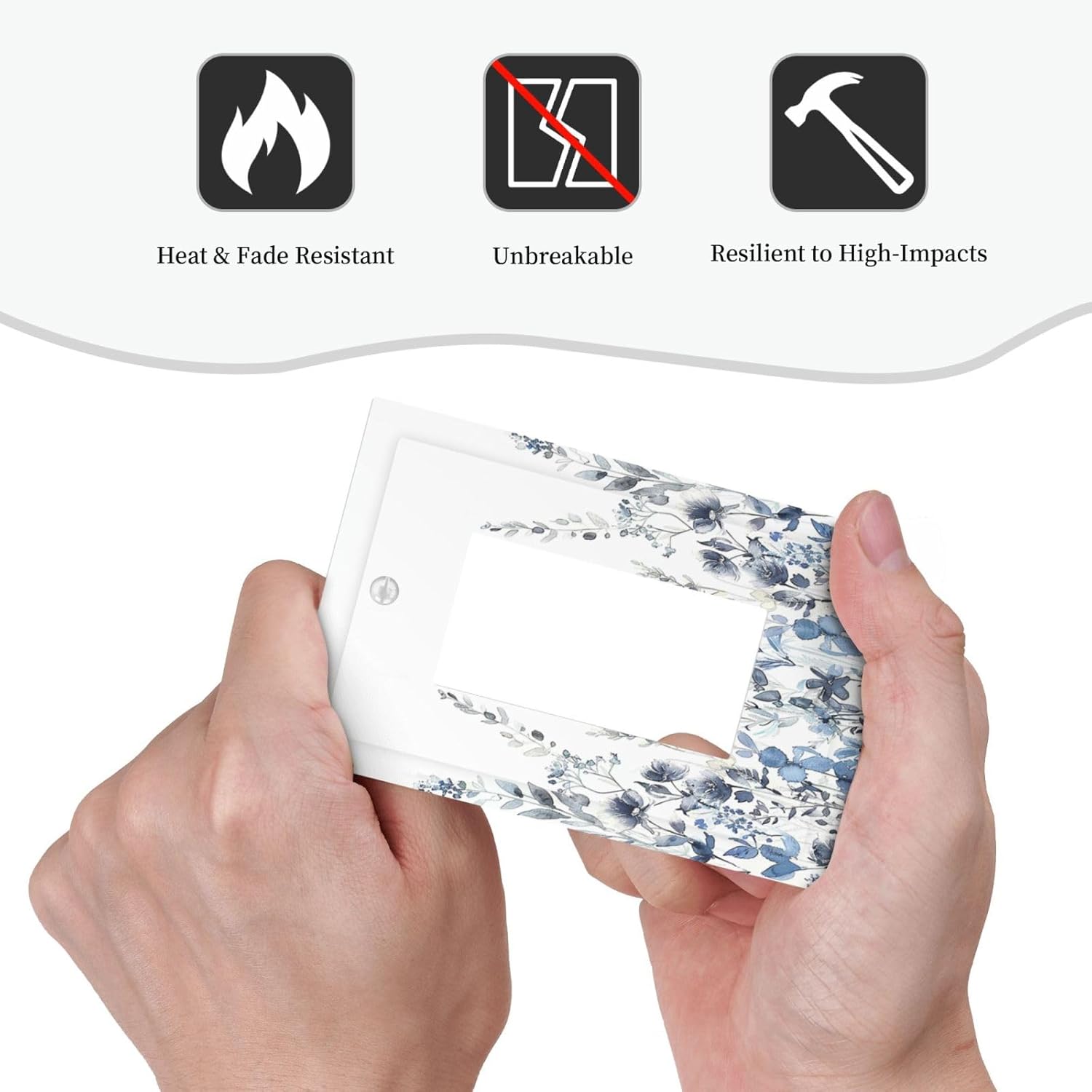 Decorative Outlet Covers Light Blue Watercolor Leaves Plant With Floral 1 Gang Single Rocker Light Switch Cover Plate Wall Plates GFCI Faceplate for Bedroom Bathroom Decor