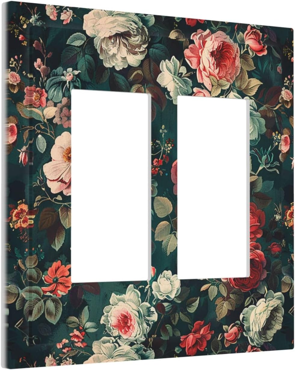 Decorative Outlet Covers Baroque Vintage Peony Flower Floral 2 Gang Double GFCI Rocker Electrical Wall Panels Light Switch Cover Plate for Bedroom Farmhouse Decor