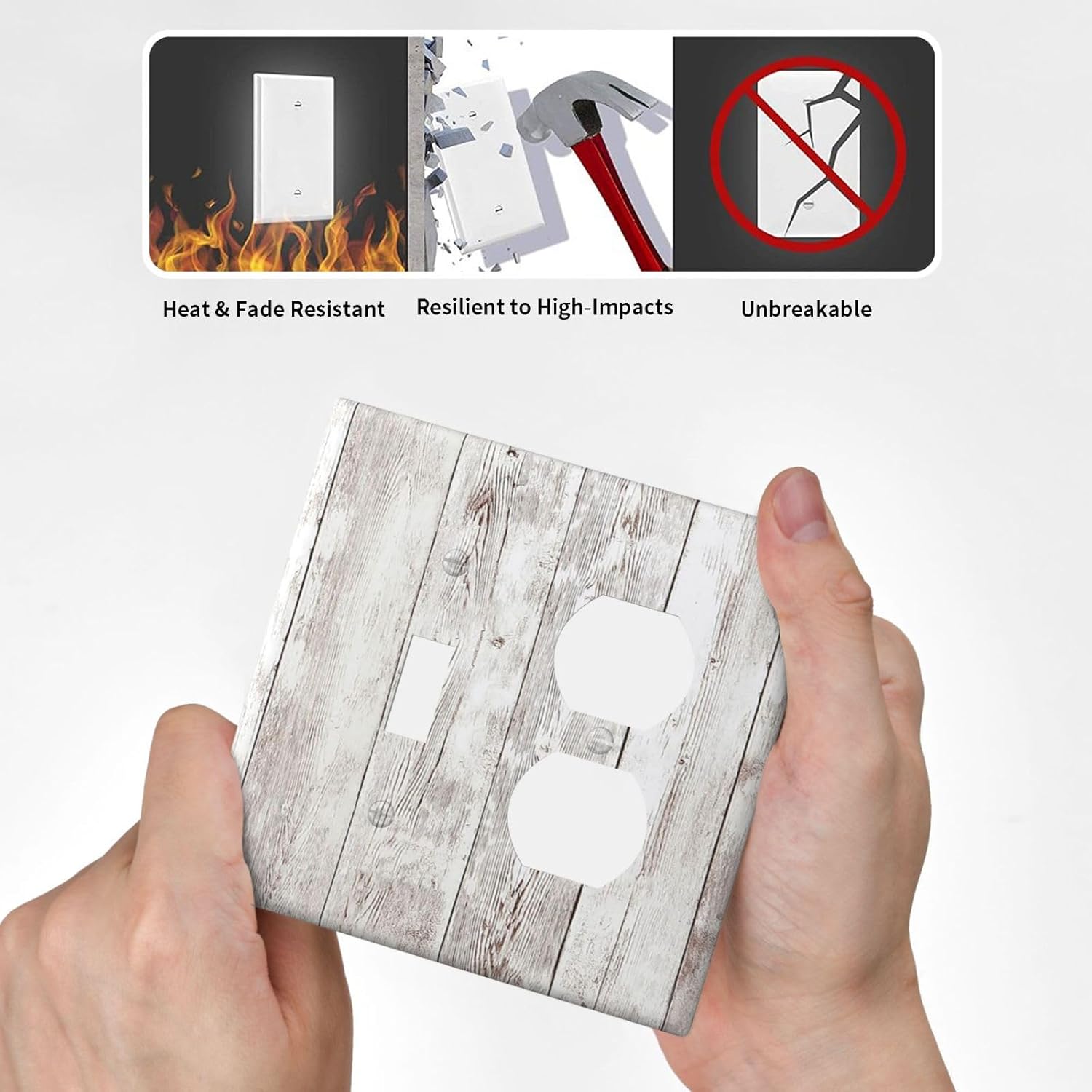 Wallplates Rustic Vintage White Wood Grain 1 Toggle 1 Duplex Switch Plate Electrical GFCI Faceplate Decorative Light Switch Covers for Farmhouse Home Decor
