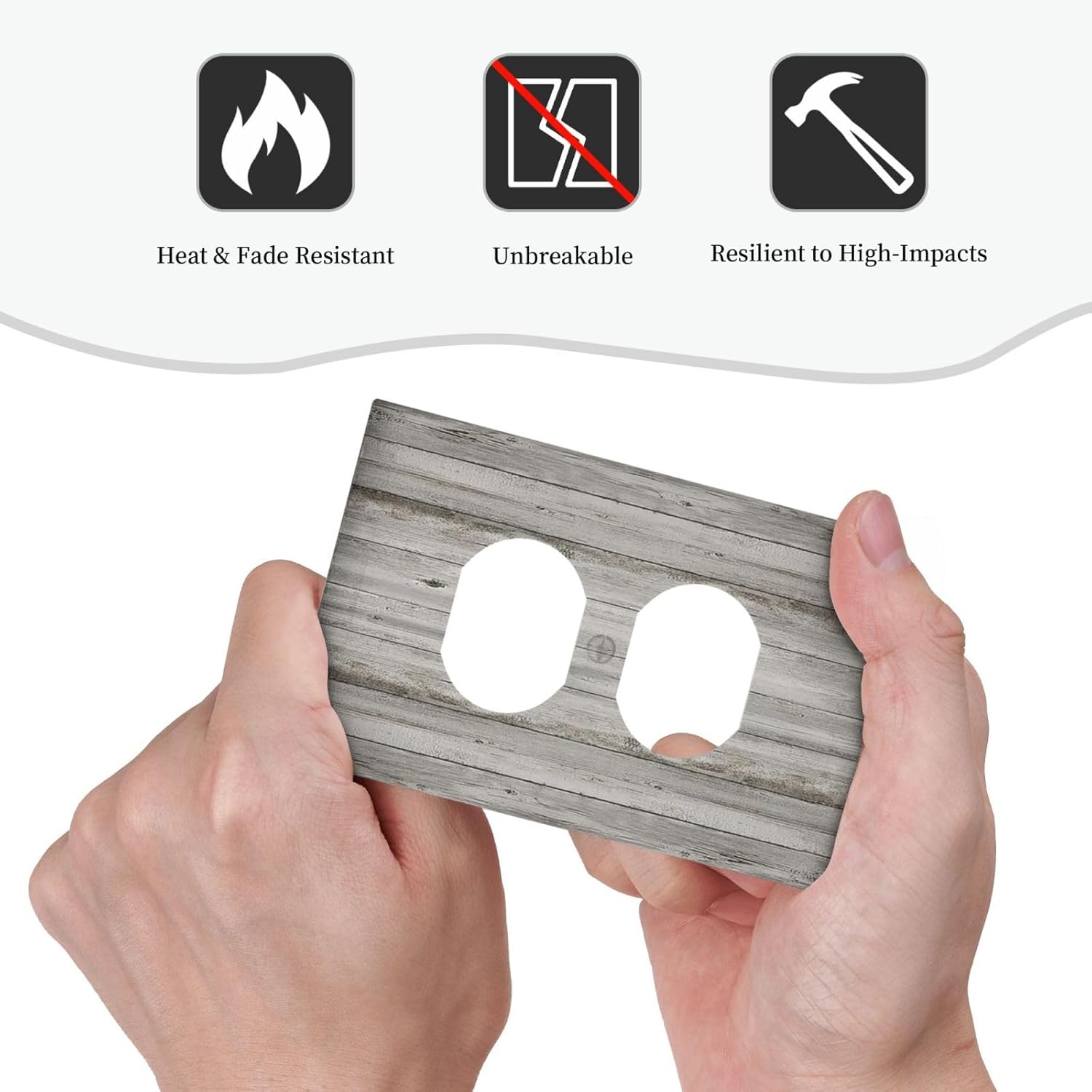 Outlet Covers Farmhouse Rustic Grey Barn Door Wood 1 Gang Duplex Wall Plate Decorative Switch Plates Electrical Receptacle Faceplate Light Switch Cover for Bedroom Cabin Decor