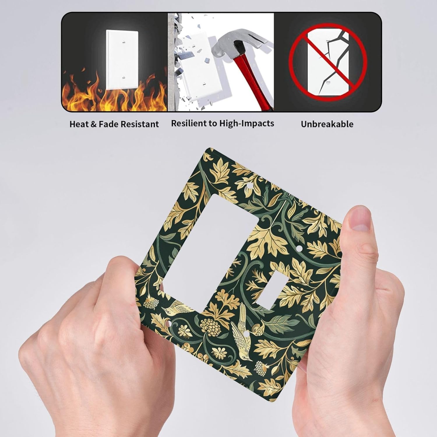 Outlet Covers William Morris Vintage Botanical Birds Golden Green Leaves 1 Toggle 1 Rocker Combination Decorative Wall Plate Electrical Switch Plates Light Switch Cover Plate for Bedroom