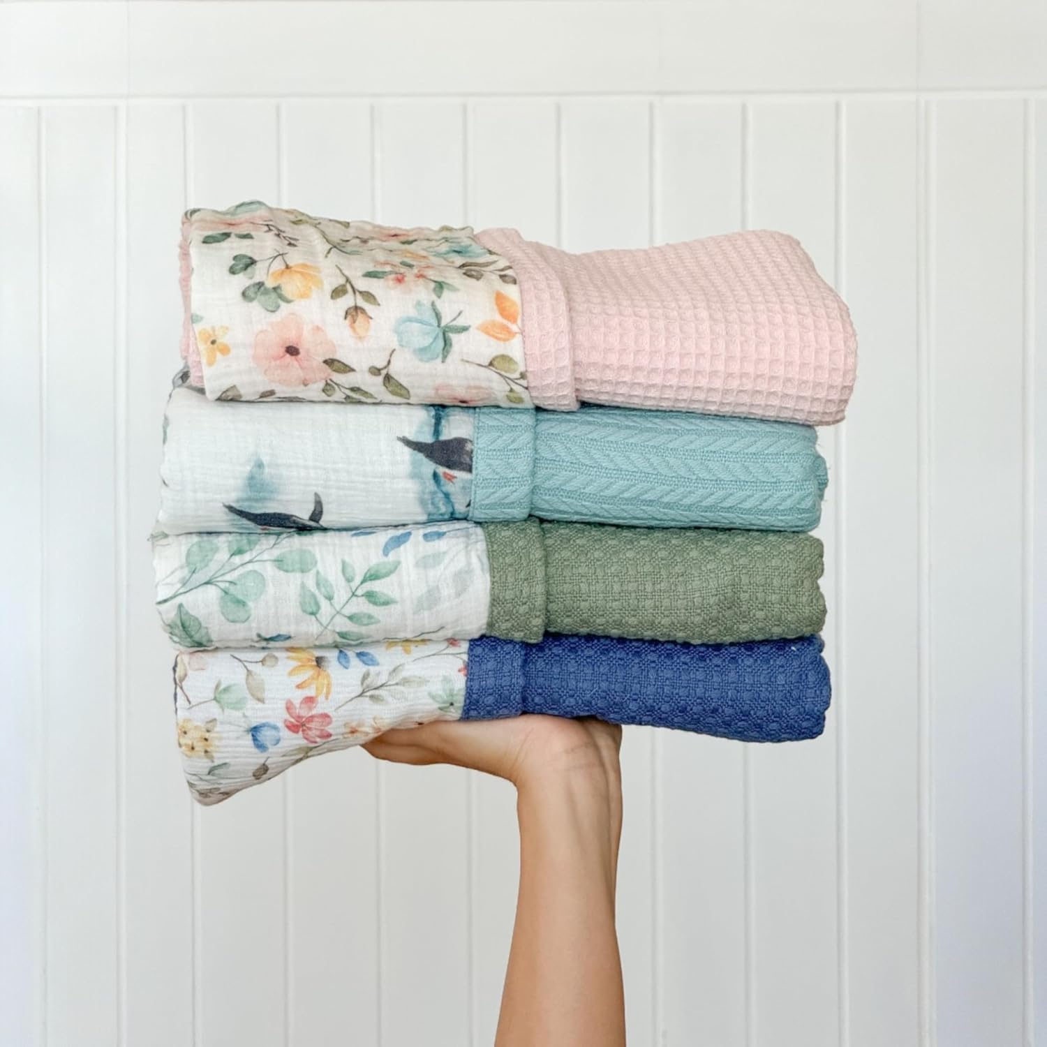- ULTRA-SOFT ORGANIC COMFORT - Wrap your baby in the gentle embrace of our waffle baby blanket, crafted from 100% organic cotton, this floral print blanket offers a breathable and soothing touch against delicate newborn skin, ensuring a cozy and peaceful rest.