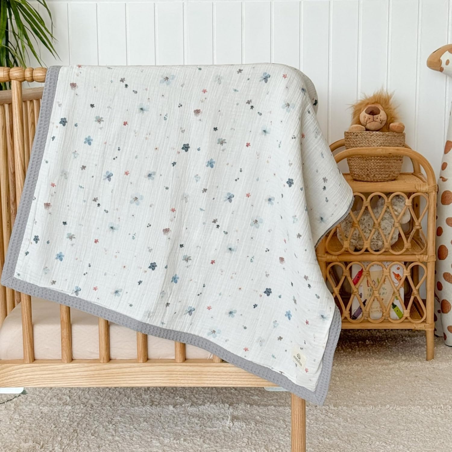 - ULTRA-SOFT ORGANIC COMFORT - Wrap your baby in the gentle embrace of our waffle baby blanket, crafted from 100% organic cotton, this floral print blanket offers a breathable and soothing touch against delicate newborn skin, ensuring a cozy and peaceful rest.