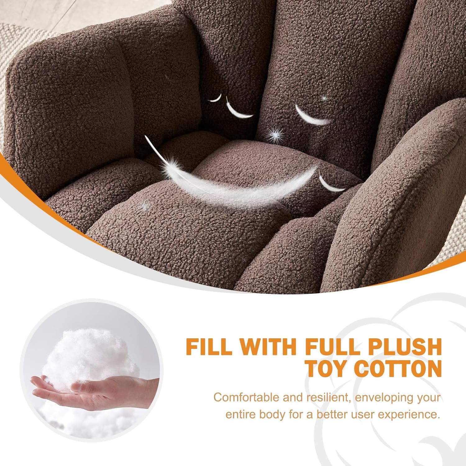 Kiztir Rocking Chair Nursery, High Backrest Teddy Glider Rocker Upholstered Rocker Recliner Modern Rocking Accent Chairs for Bedroom, Living Room, Offices (Brown)
