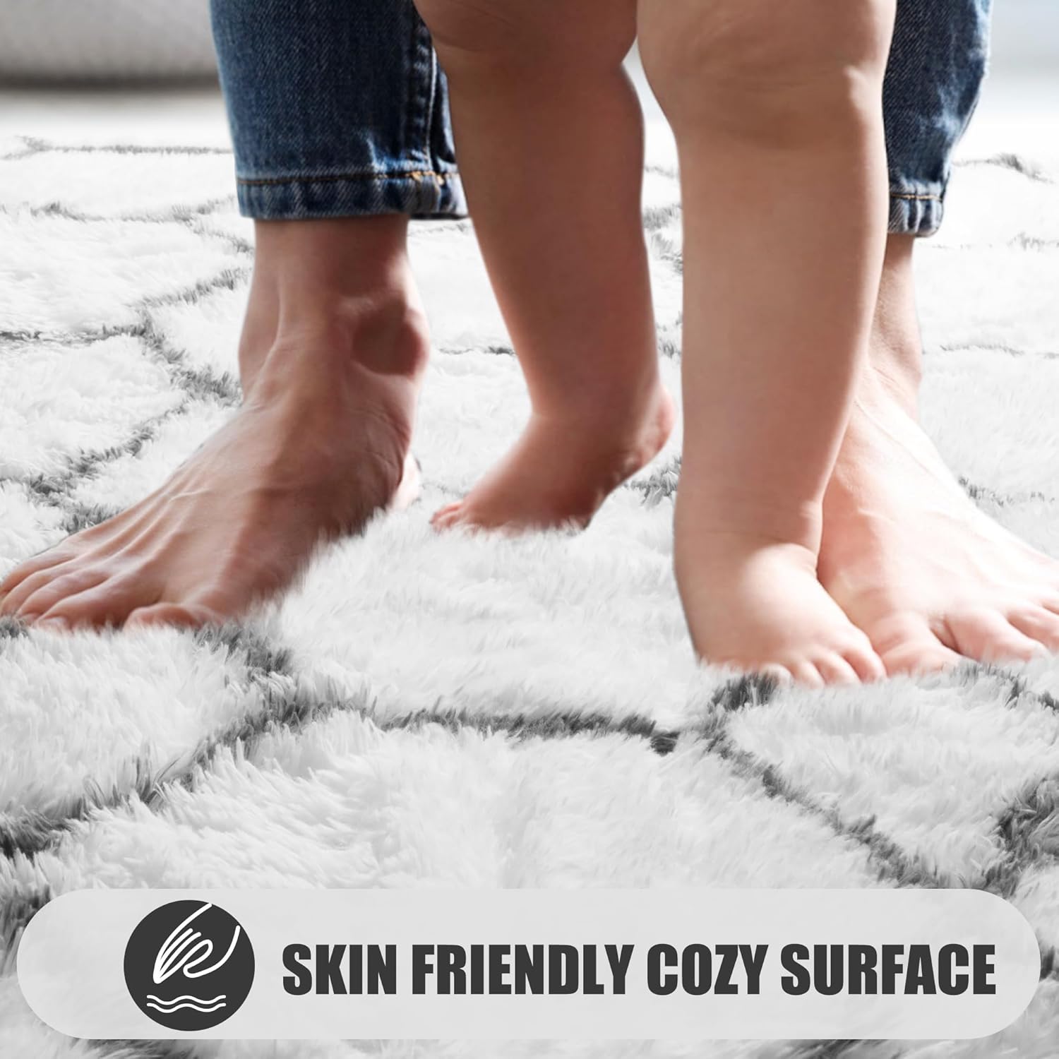 - [ Ultra Soft & Skin-friendly ]: ONASAR area rug is crafted from the plush fiber and upgraded backing, the fluffy area rug is incredibly soft to the touch and provides additional cozy and warmth to your home. They are great for barefoot walking and perfect for tummy time for babies. The rugs are kids and pet-friendly!