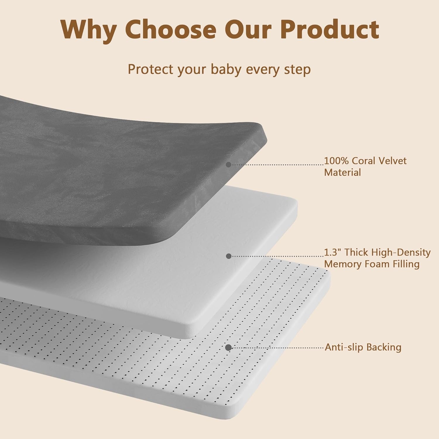 - 【NEW UPGRADE! 1.3-inch Thickened Memory Foam Rug】Upgrade goes beyond thickness—it's thoughtful care for your baby's every moment! Our newly upgraded memory foam rug, a top-notch thick play mat, redefines comfort with 1.3-inch thickness. A "cloudy haven" for your little one: soft yet supportive, it cushions rolls during play, eases tummy time pressure, and ensures cozy naps.