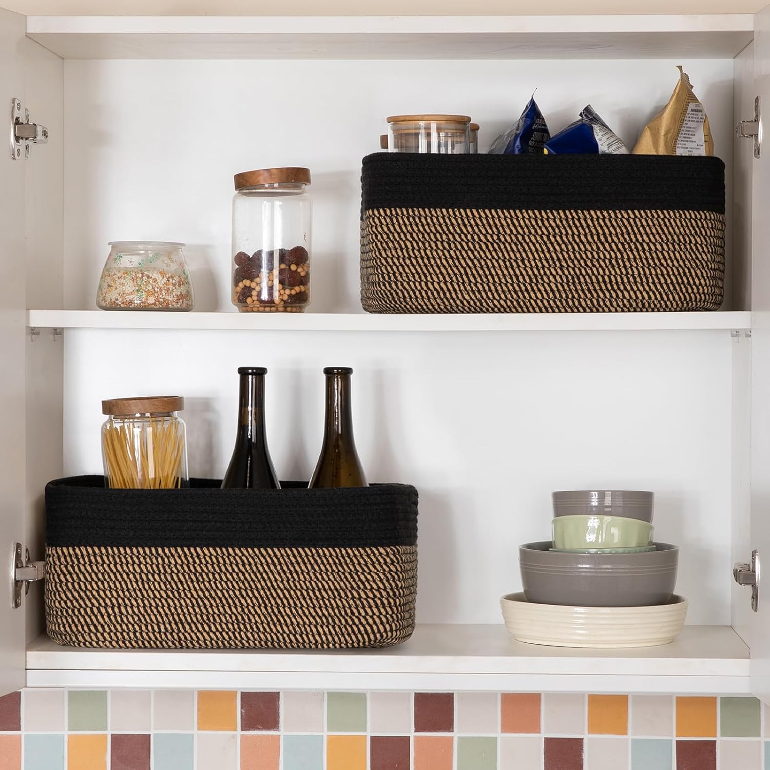 - Stylish and Elegant: With a modern minimalist design and classic netural color, our woven baskets are perfect for oganizing small items on your desktop, in closets or shelves. They can add a touch of warmth and texture to any room while tackling home clutter
