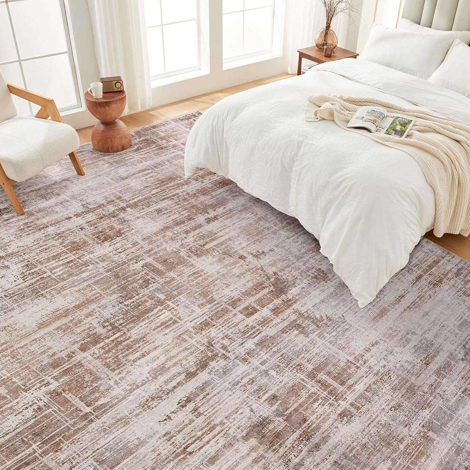 - Neutral Abstract Style: Elegant neutral design lets this rug integrate seamlessly into any space. It enhances room ambiance and adds refined elegance to your home. Perfect for living rooms, bedrooms, dining rooms, studies, offices, playrooms and nurseries
