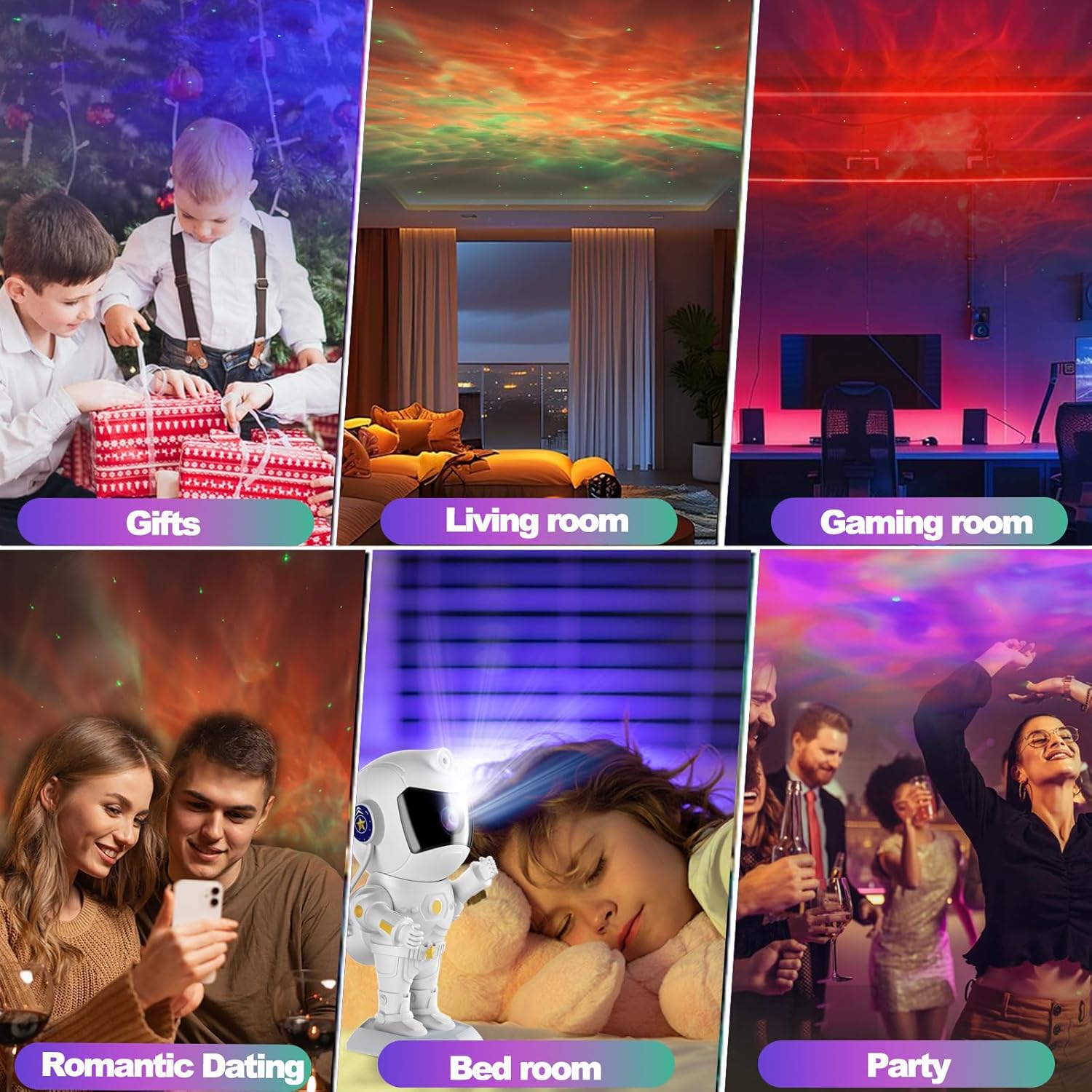 - 🚀【Nebula Effects】The astronaut projector designed with 8 kinds of amazing nebula effects and with twinkling green stars. Projecting on the walls or ceiling of the bedroom to create a tranquil and immersive galaxy atmosphere