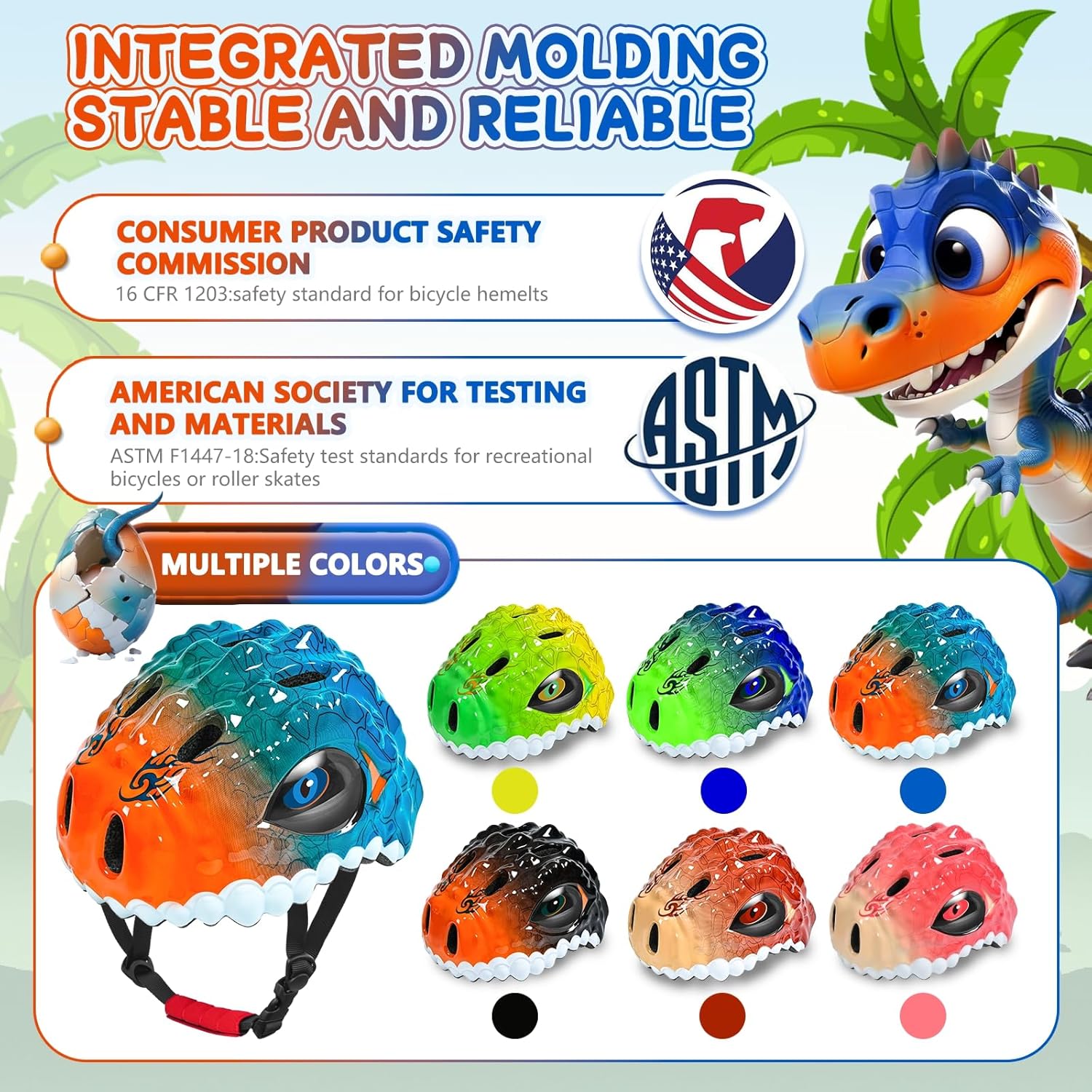 - 【7-IN-1 MULTIFUNCTIONAL PROTECTIVE GEAR SET】The toddler helmet set includes 1 3D Adjustable helmet, 2 knee pads, 2 elbow pads, 2 wrist pads, 1 bicycle bell, 1 helmet lining. The unique animal appearance of the helmet easily wins the love of children, and you no longer have to worry about your child not liking to wear a helmet.