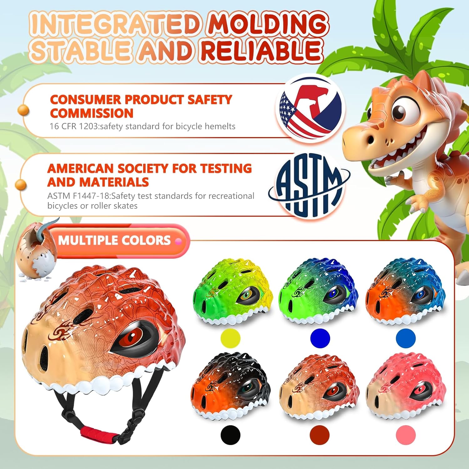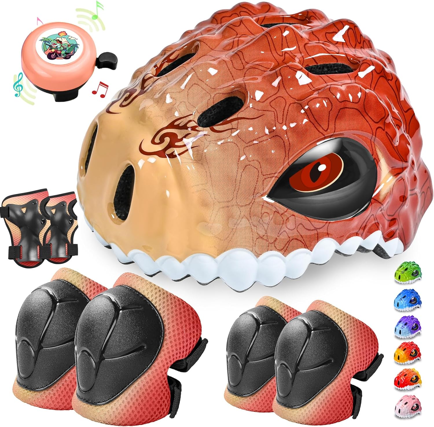 Toddler/Kids Bike Helmet Set for Boys Girls 3D Adjustable Kids Helmet Protective Gear Set Knee Elbow Wrist Pads and Multi-Sports Skateboard Scooter Cycling Roller Balance Bike