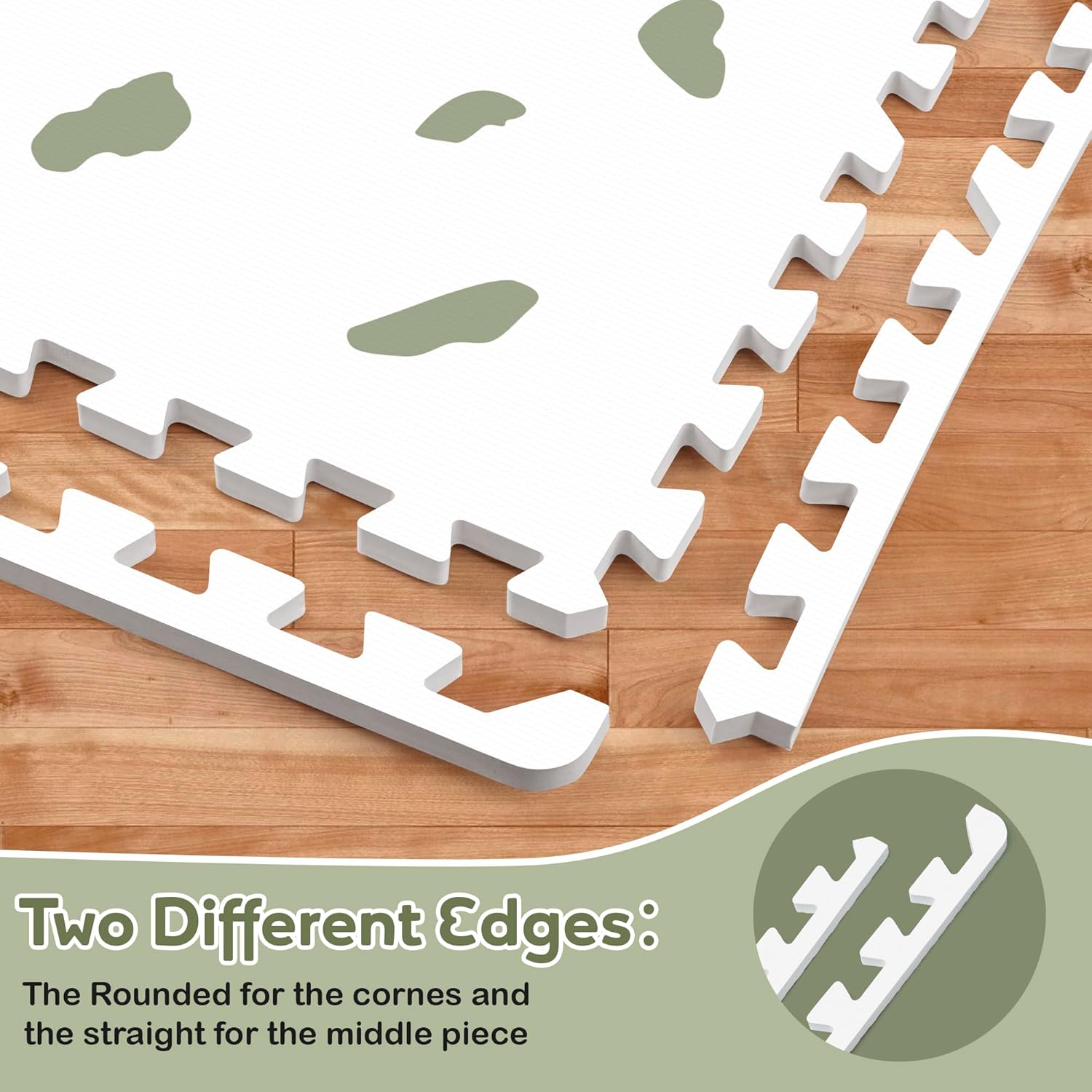 - GREEN SPOT PATTERN DESIGN: The green spot design adds a calming and natural touch to any nursery, making it a perfect spot for your little one to grow and play making it a pleasant place for your little ones to interlock foam floor tiles. Made of soft high-quality materials, the non slip bottom ensures its stable placement, making it provides a safe and calming play area for your baby or toddler.