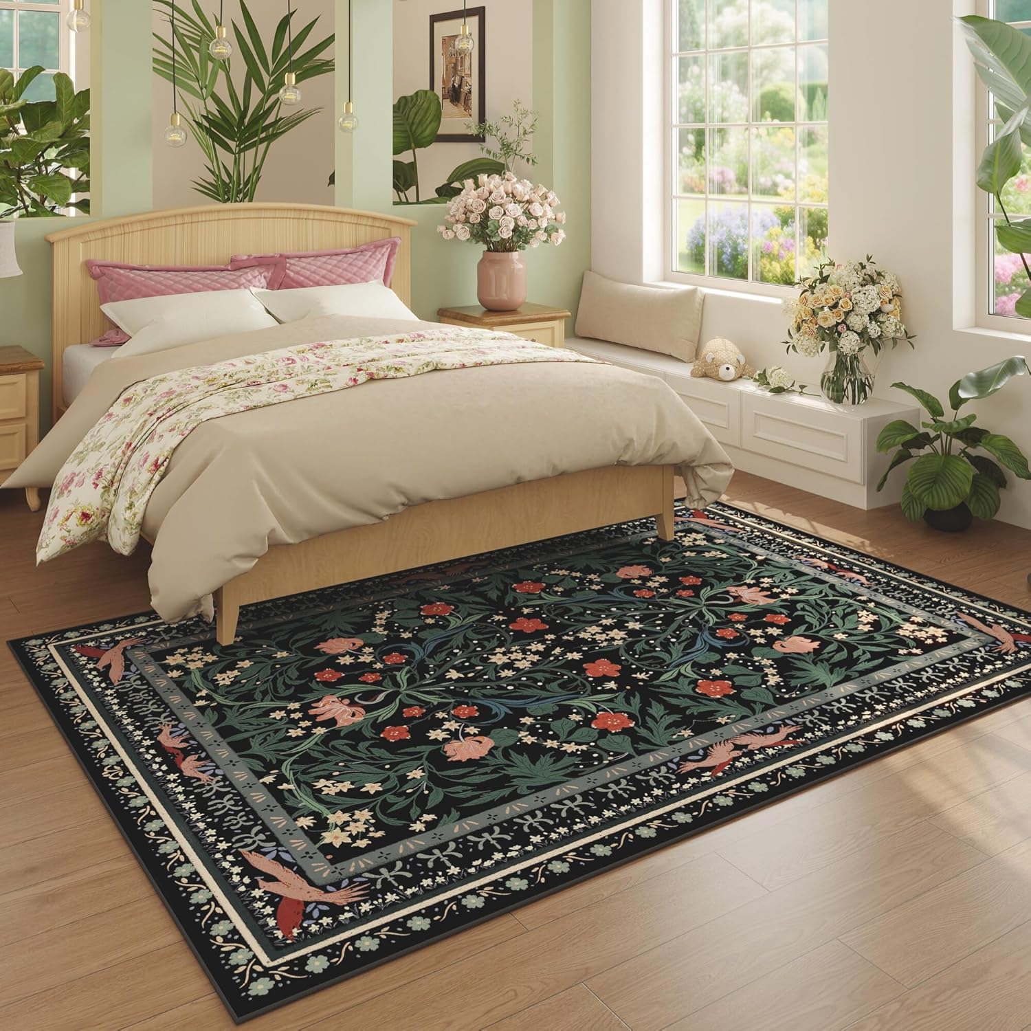 - Non-Slip Rug—Textured TPR-coated backing ensures secure placement—no extra pad required. Vintage floral botanical patterns add dynamic charm to living rooms, bedrooms, dining areas, entryways, playrooms, home offices, kitchens, and more.