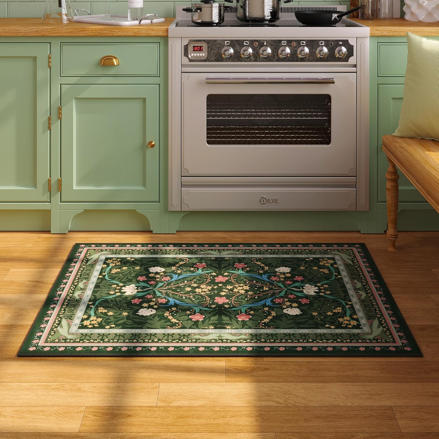- Non-Slip Rug—Textured TPR-coated backing ensures secure placement—no extra pad required. Vintage floral botanical patterns add dynamic charm to living rooms, bedrooms, dining areas, entryways, playrooms, home offices, kitchens, and more.