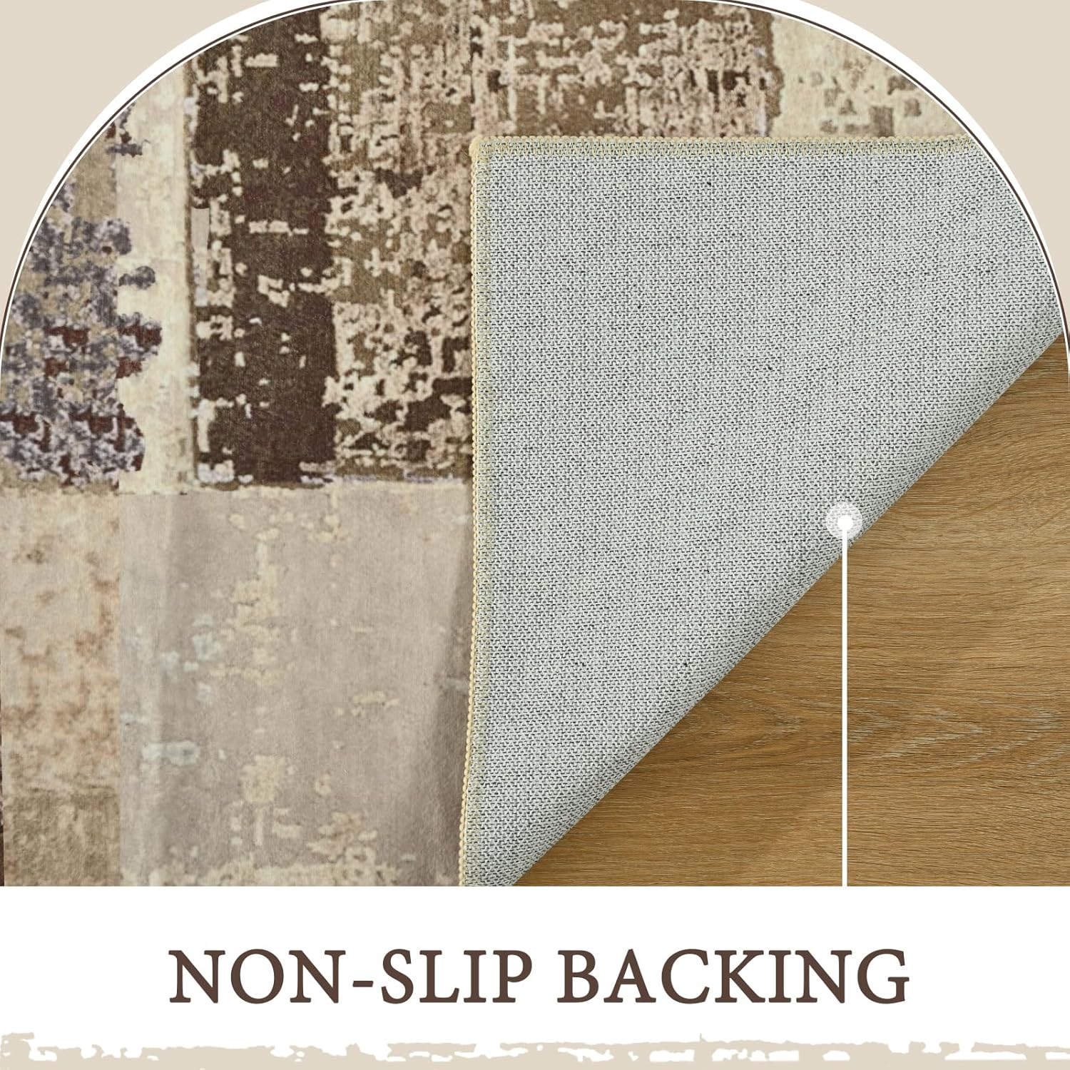 LOCHAS Rug for Living Room, Washable Soft Area Rugs for Bedroom 8x10, Abstract Carpet for Indoor Office Kids Dining Room Nursery Floor, Khaki Geometric Vintage Home Decor, Non Slip, Pet Child Friendly