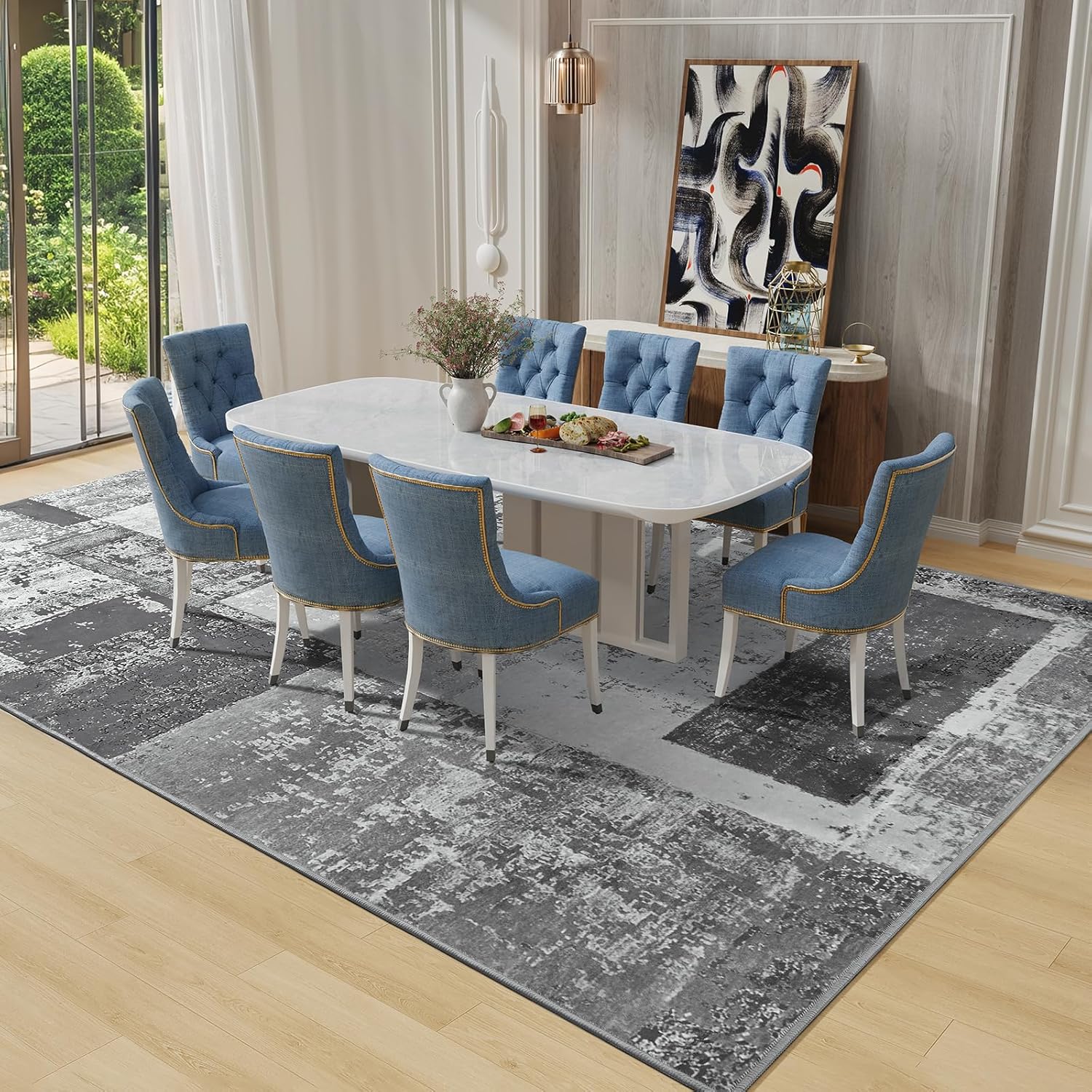 LOCHAS Rug for Living Room, Washable Soft Area Rugs for Bedroom 5x8, Abstract Carpet for Indoor Office Kids Dining Room Nursery Floor, Grey Geometric Vintage Home Decor, Non Slip, Pet Child Friendly