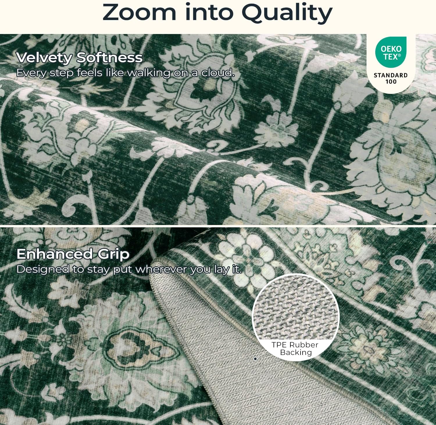 - Non-Slip & Safe: The built-in TPE rubber backing firmly grips the floor to keep the rug in place, so every step feels secure. Its low-pile surface minimizes tripping hazards, ideal for high traffic areas like the living room, family room, or playroom