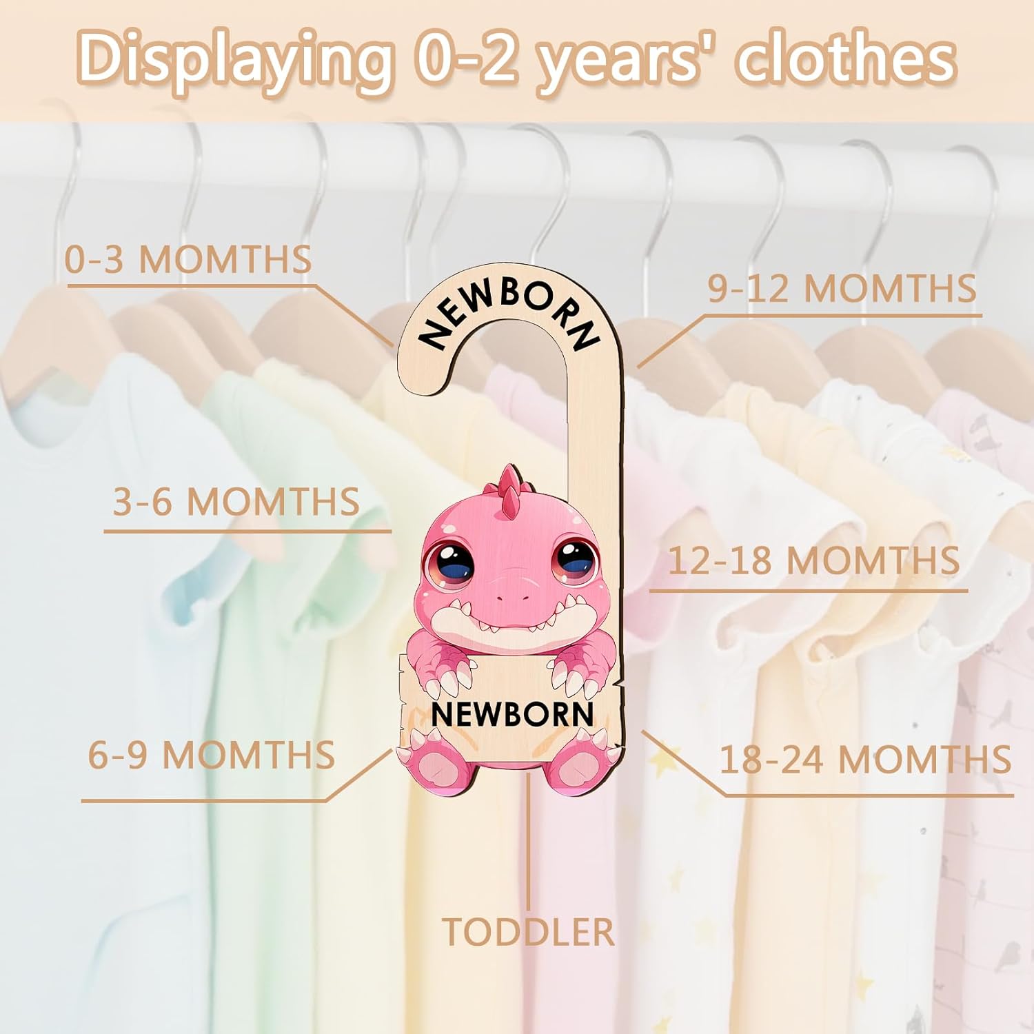 - 【What's Included】 This set of wooden baby closet organizers includes 8 sturdy dividers, each featuring a different dinosaur illustration. They cover essential growth stages: newborns, 0-3 months, 3-6 months, 6-9 months, 9-12 months, 12-18 months, 18-24 months, and toddler. As your baby grows, sorting clothes by age makes daily access and care much smoother