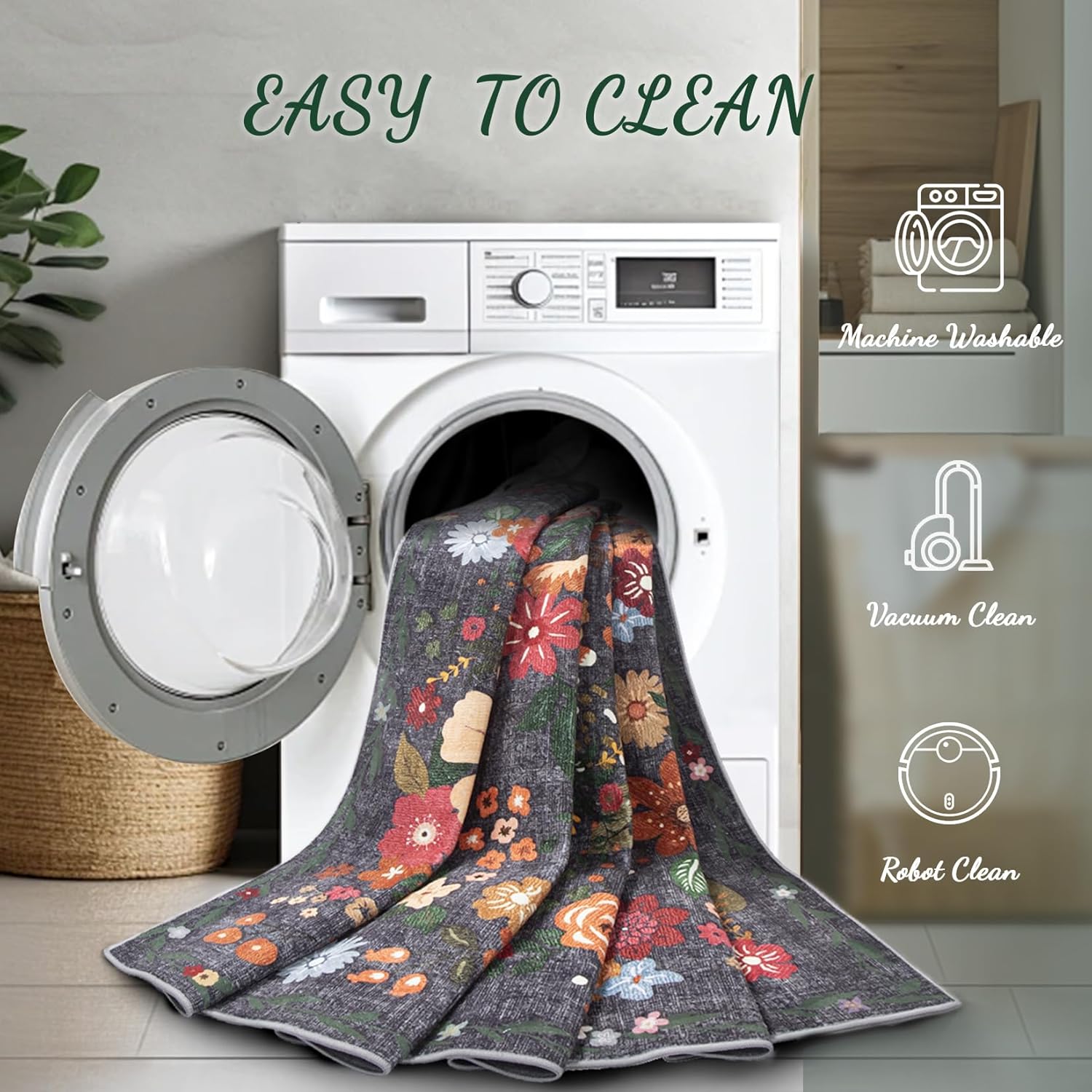 - Machine Washable Area Rugs: Bedroom rugs are stain-resistant on the surface and can be cleaned up with a low powered vacuum cleaner for everyday dust, while stubborn stains can be wiped up with a damp cloth. Vintage printed washable rug can also be thrown straight into the washing machine to save hassle and keep your rug looking new
