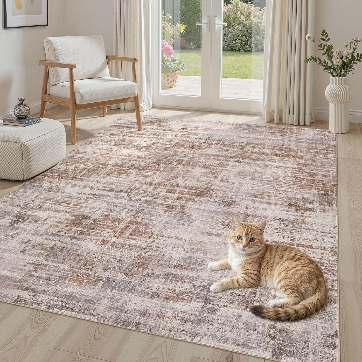 - Neutral Abstract Style: Elegant neutral design lets this rug integrate seamlessly into any space. It enhances room ambiance and adds refined elegance to your home. Perfect for living rooms, bedrooms, dining rooms, studies, offices, playrooms and nurseries