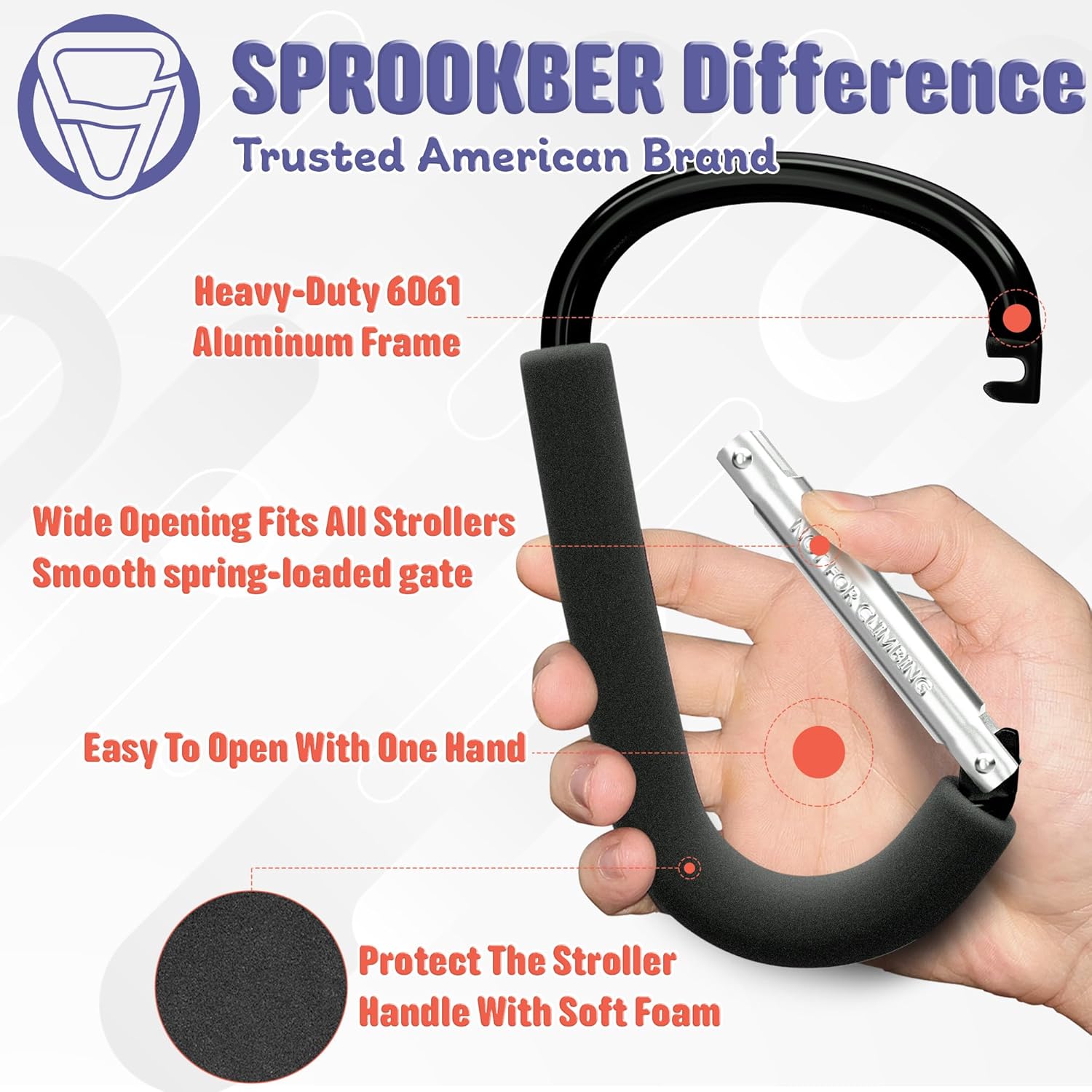 sprookber 6.7 Inch Large Stroller Hooks for Diaper Bags & Purses, Heavy Duty Mommy Hooks for Shopping, Grocery, Backpack – Baby Stroller Accessories, Set of 2 (Black)