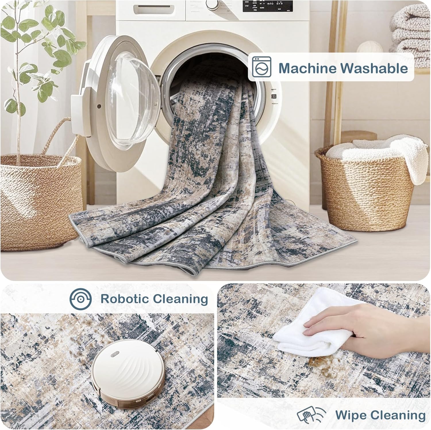 - Modern Abstract Rug: Simple color with soft stripe design, our living room rug has a modern look with a distressed feel; And 6x9 rug perfect for living room, bedroom, dining room, kitchen, children's room, office, laundry room, dorm.