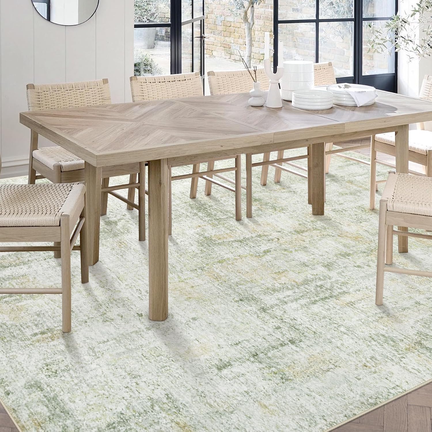 Area Rugs 5x7 Living Room: Washable Rug Modern Abstract Rugs Soft Non Slip Neutral Rug Stain Resistant Indoor Carpet for Bedroom Kitchen Dining Room Nursery Home Office Rugs(Green Brown,5'x7')
