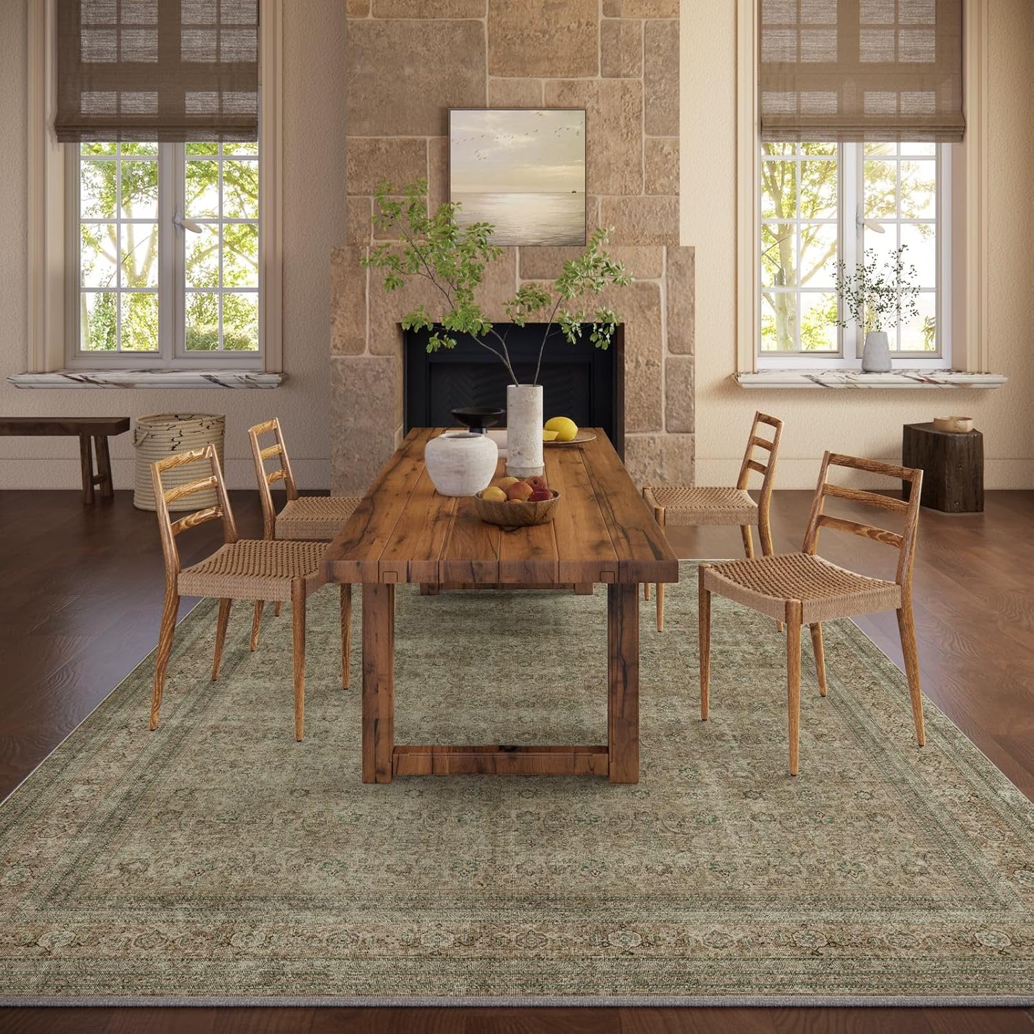 Washable Area Rugs for Living Room: 6x9 Bedroom Rug Boho Vintage Rugs Stain Resistant Non Slip Low Pile Lightweight Soft Carpets for Dining Room Kitchen Nursery Kids Room Farmhouse Living Room