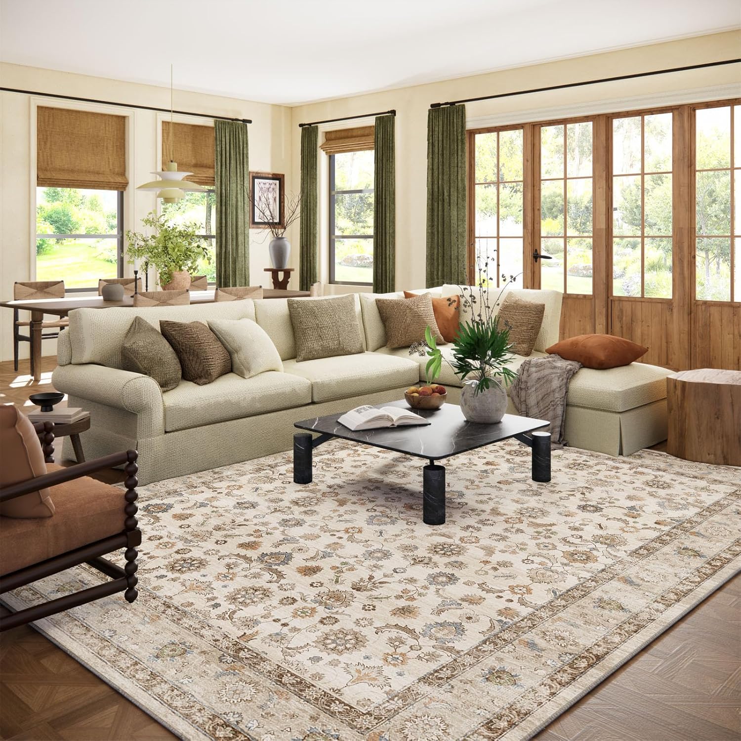 Washable Area Rugs for Living Room: 8x10 Bedroom Rug Boho Vintage Area Rug Stain Resistant Non Slip Low Pile Lightweight Soft Carpets for Dining Room Kitchen Nursery Kids Room Playroom Home Office