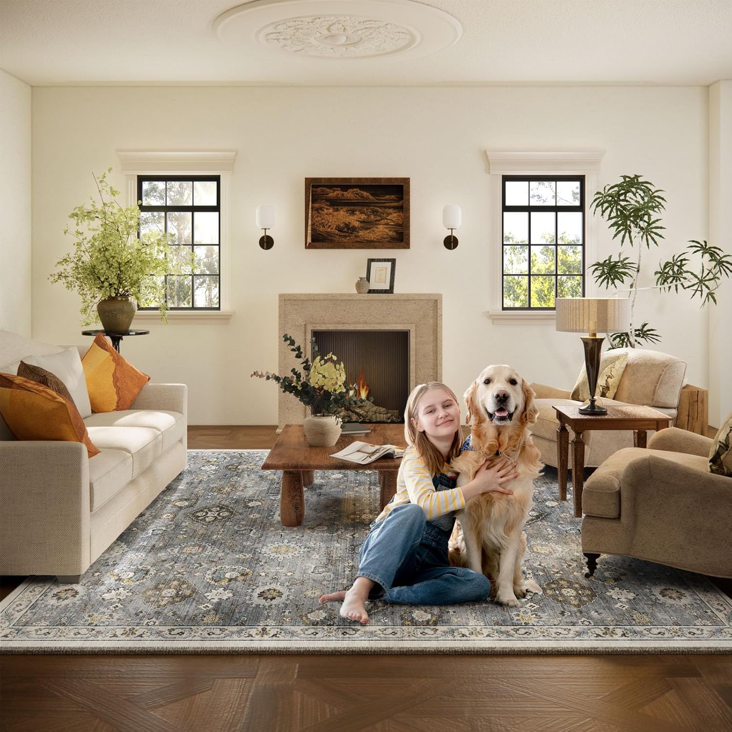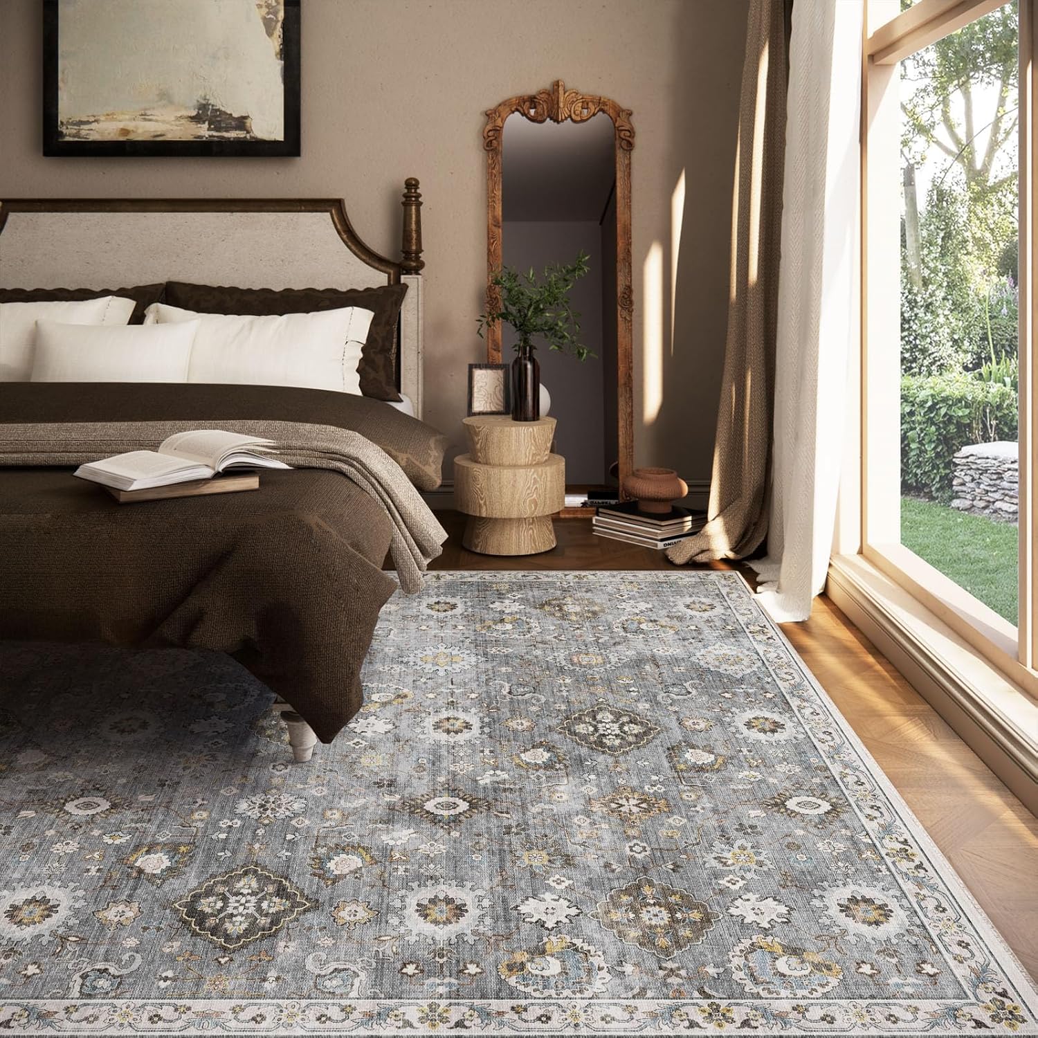 Machine Washable Rug for Living room: 8x10 Area Rugs Boho Vintage Rugs Stain Resistant Non Slip Low Pile Lightweight Soft Carpet for Bedroom Kitchen Dining Room Nursery Kids Room Farmhouse Home Office