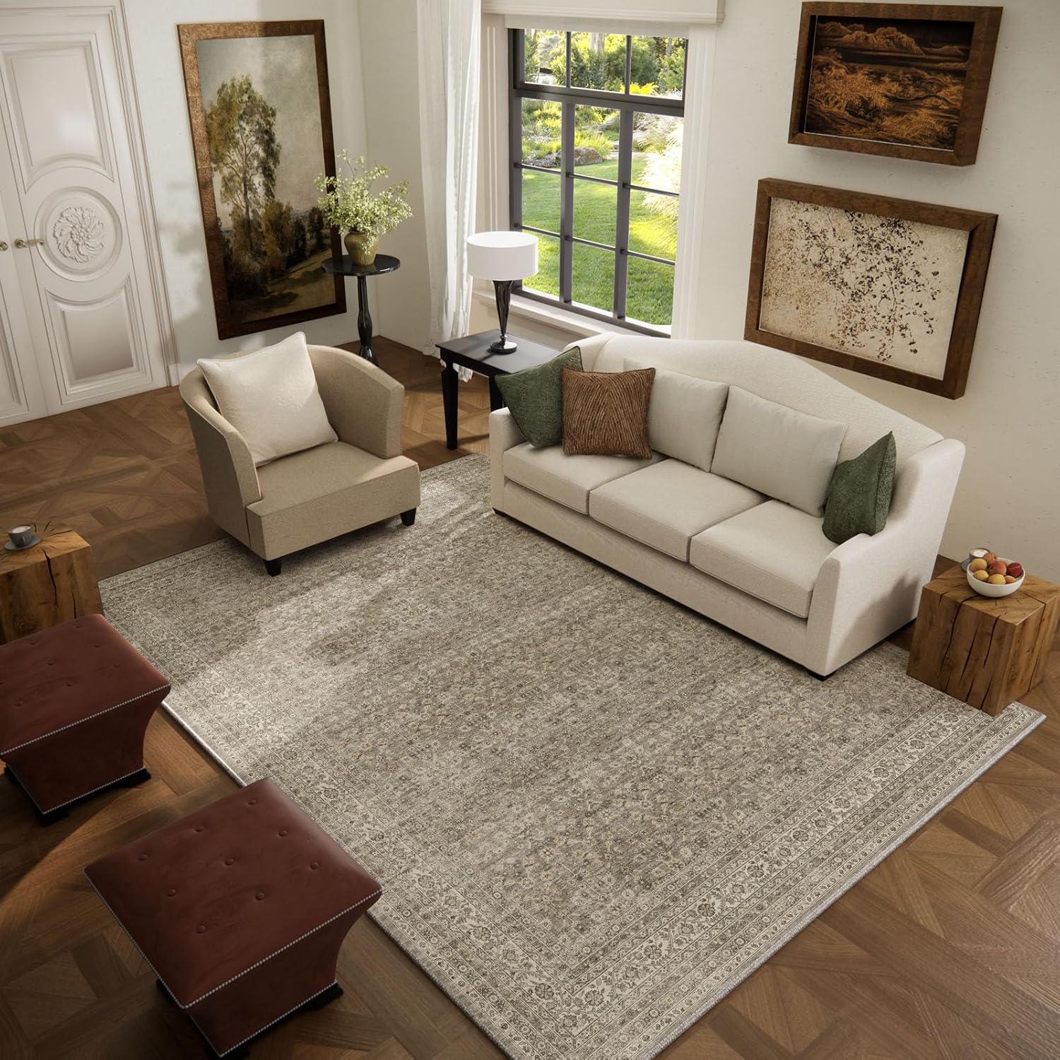Washable Area Rugs for Living Room: 5x7 Bedroom Area Rug Boho Vintage Rugs Stain Resistant Non Slip Low Pile Soft Lightweight Carpet for Kitchen Dining Room Farmhouse Nursery Kids Room