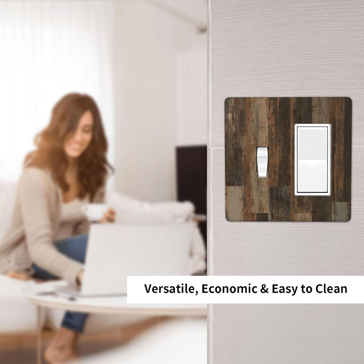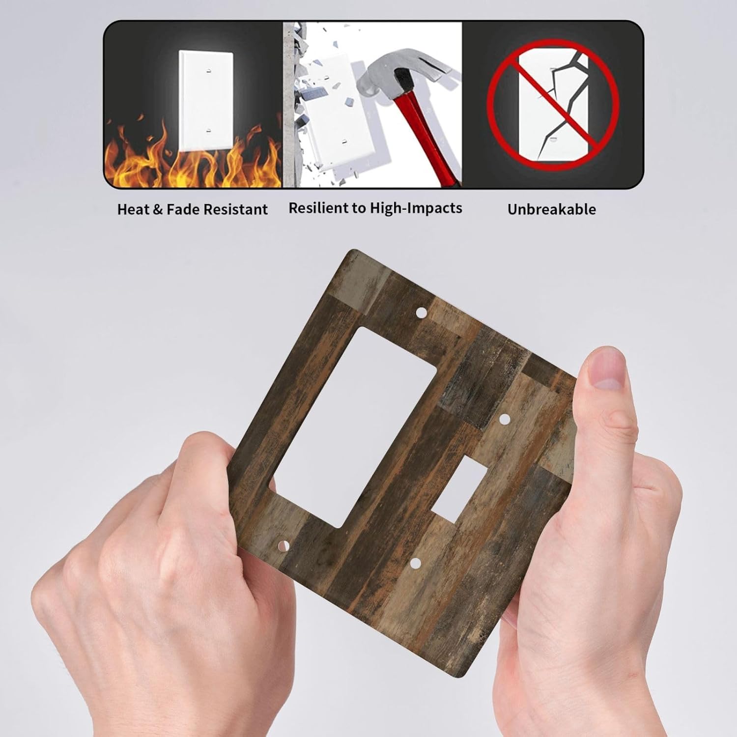 Rustic Brown Wood Grain Dark Oak Outlet Covers 1 Toggle 1 Rocker Combination Decorative Wall Plate Electrical Switch Plates Light Switch Cover Plate for Farmhouse Home Decor