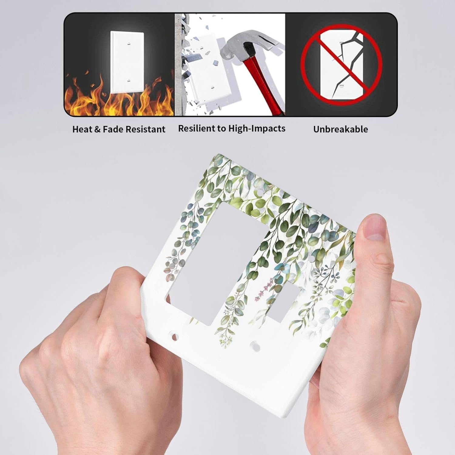Green Eucalyptus Leaf Plant Herbs Springnature Outlet Covers 1 Toggle 1 Rocker Combination Decorative Wall Plate Electrical Switch Plates Light Switch Cover Plate for Bed Room Living Room Decor