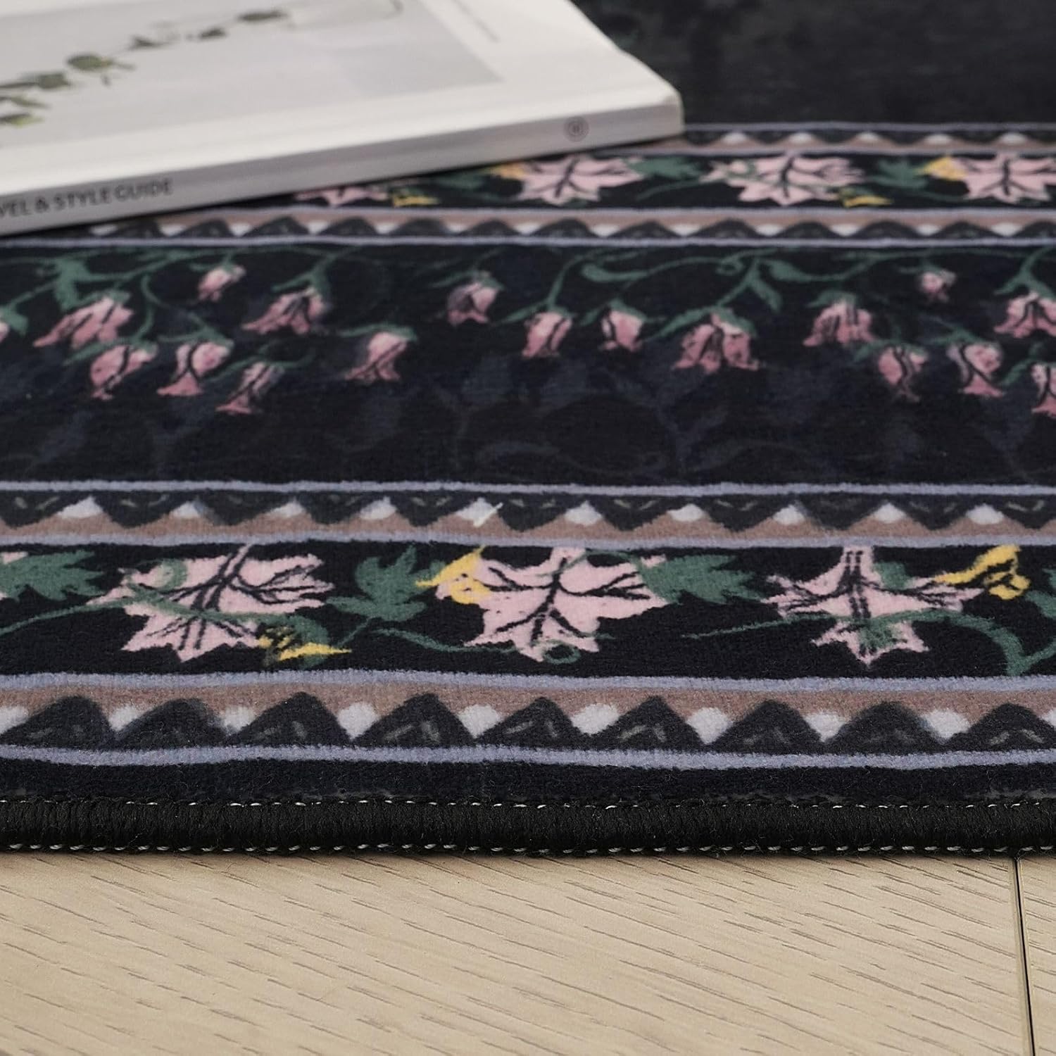 Runner Rug Impressionist-Style Vintage Kitchen Rugs Non Slip Washable Soft Carpet Runner for Kitchen Laundry Bedroom Bathroom, Black