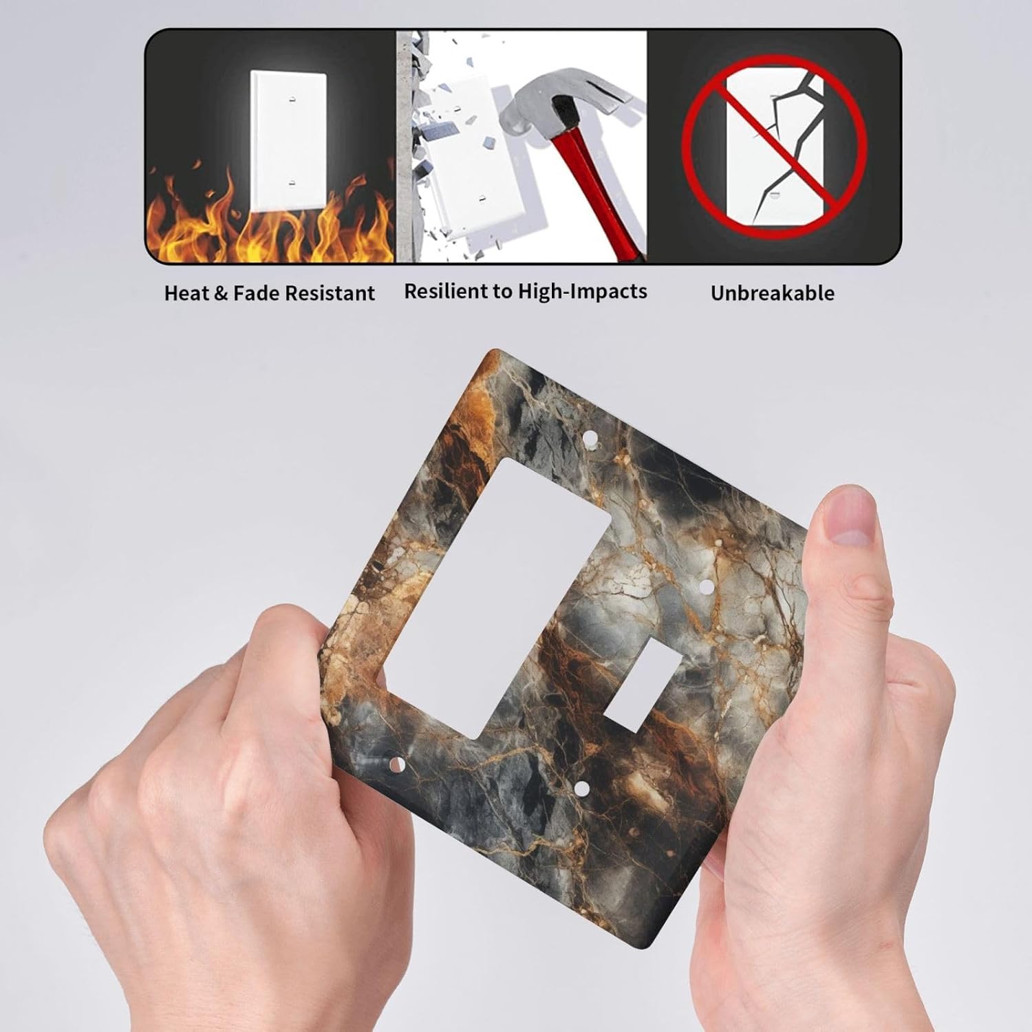 Brown Marble Granite Golden Lines Print Outlet Covers 1 Toggle 1 Rocker Combination Decorative Wall Plate Electrical Switch Plates Light Switch Cover Plate for Bathroom Kitchen Decor