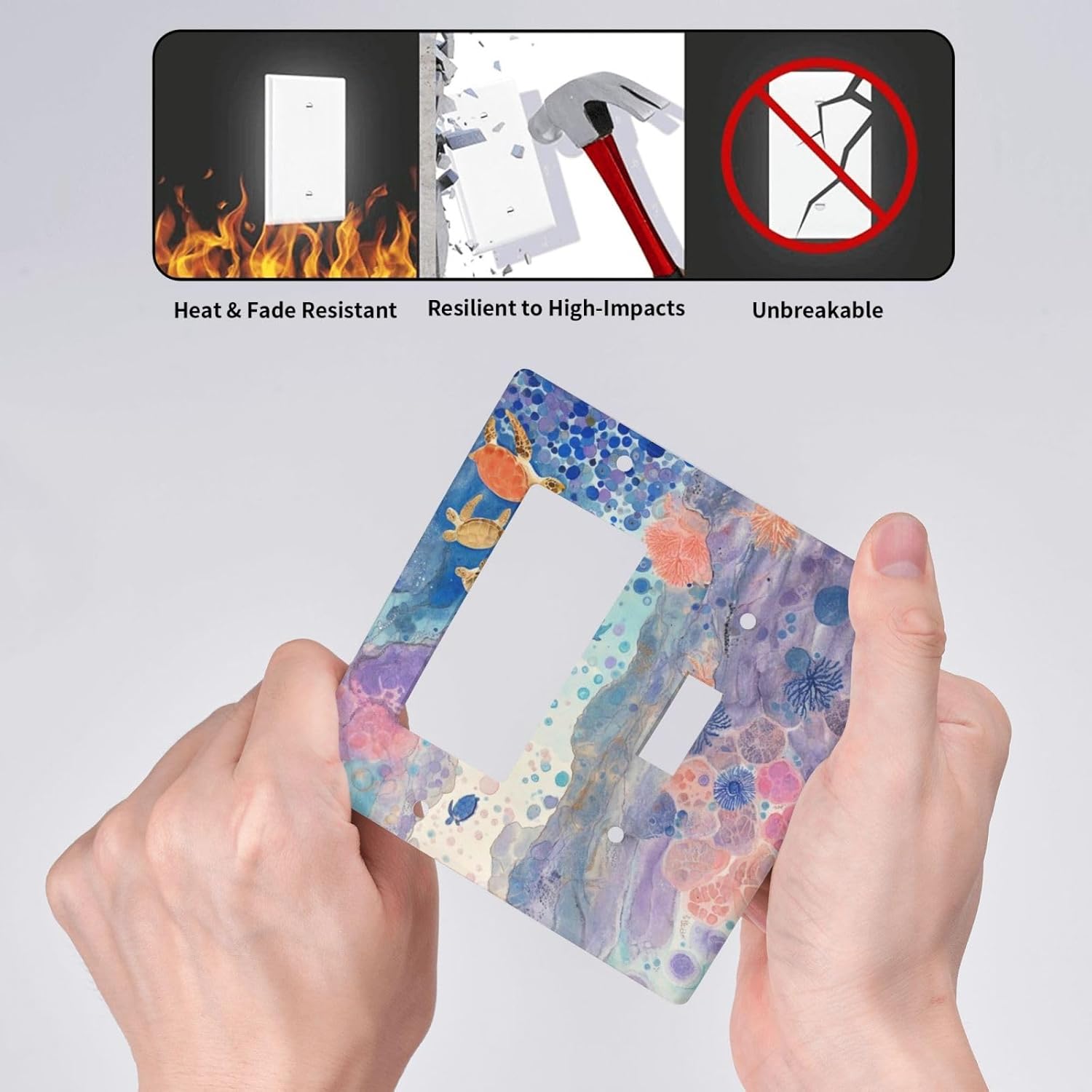 Turtle Coral Fish Watercolor Colorful Underwater World Outlet Covers 1 Toggle 1 Rocker Combination Decorative Wall Plate Electrical Switch Plates Light Switch Cover Plate for Kids Room Home Decor