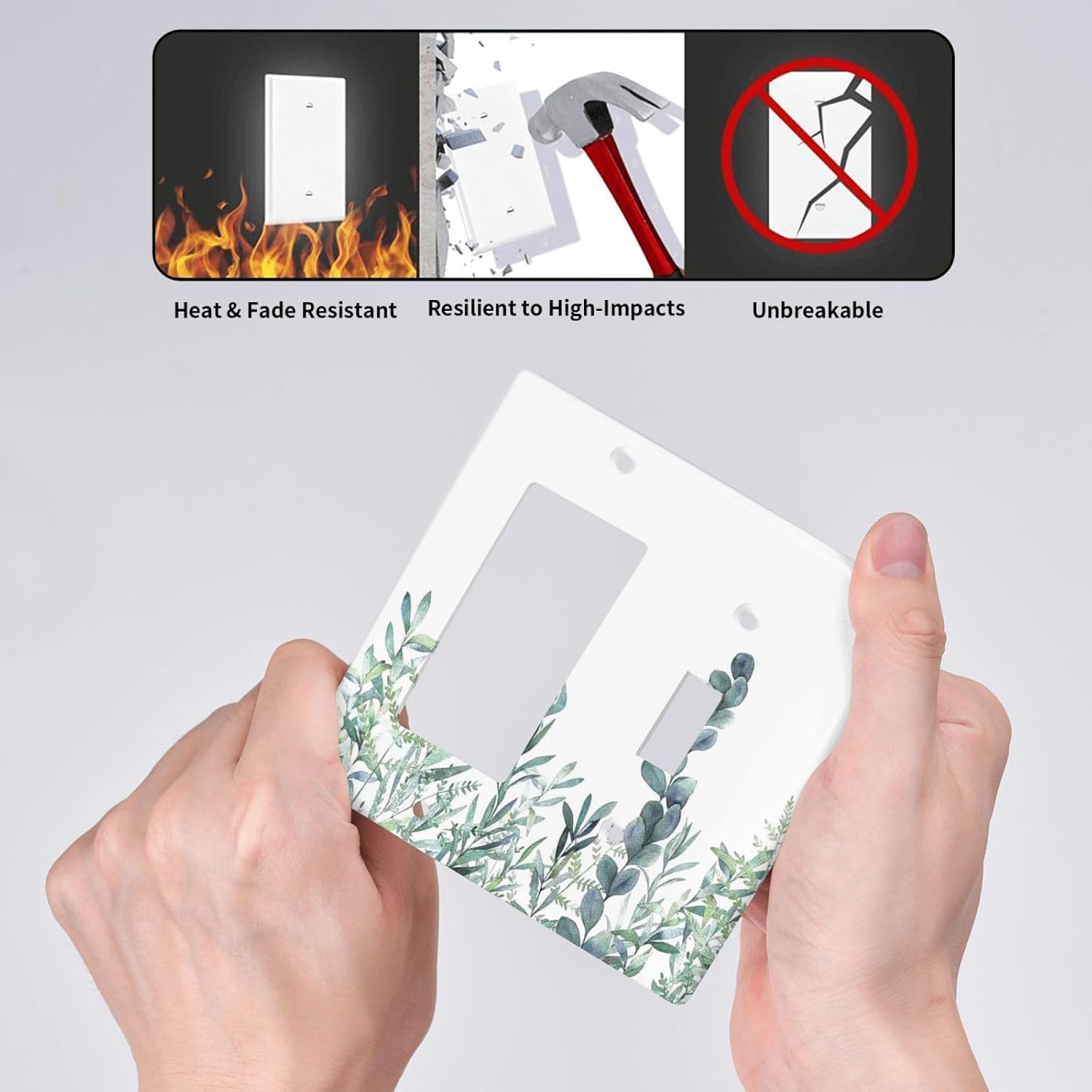 Eucalyptus Leaves Greenery Vine Flowers Simplicity Outlet Covers 1 Toggle 1 Rocker Combination Decorative Wall Plate Electrical Switch Plates Light Switch Cover Plate for Bed Room Living Room Decor