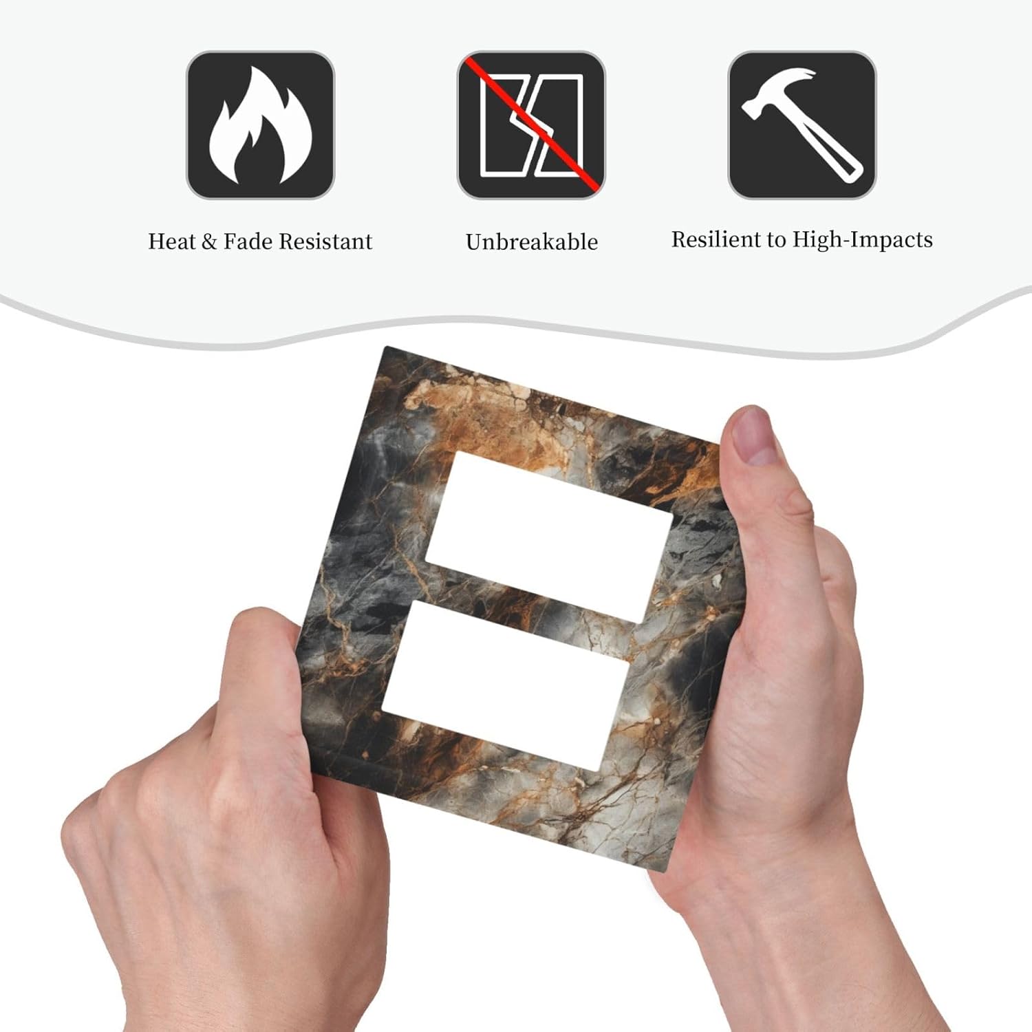 Brown Marble Granite Golden Lines Print Decorative Outlet Covers 2 Gang Double GFCI Rocker Electrical Wall Panels Light Switch Cover Plate for Bathroom Kitchen Decor