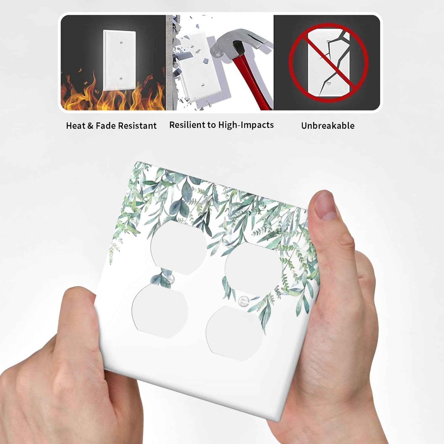 Eucalyptus Leaves Greenery Vine Flowers Simplicity Outlet Covers 2 Gang Double Duplex Decorative Light Switch Covers Electrical Wallplates Socket Faceplate for Bed Room Living Room Decor