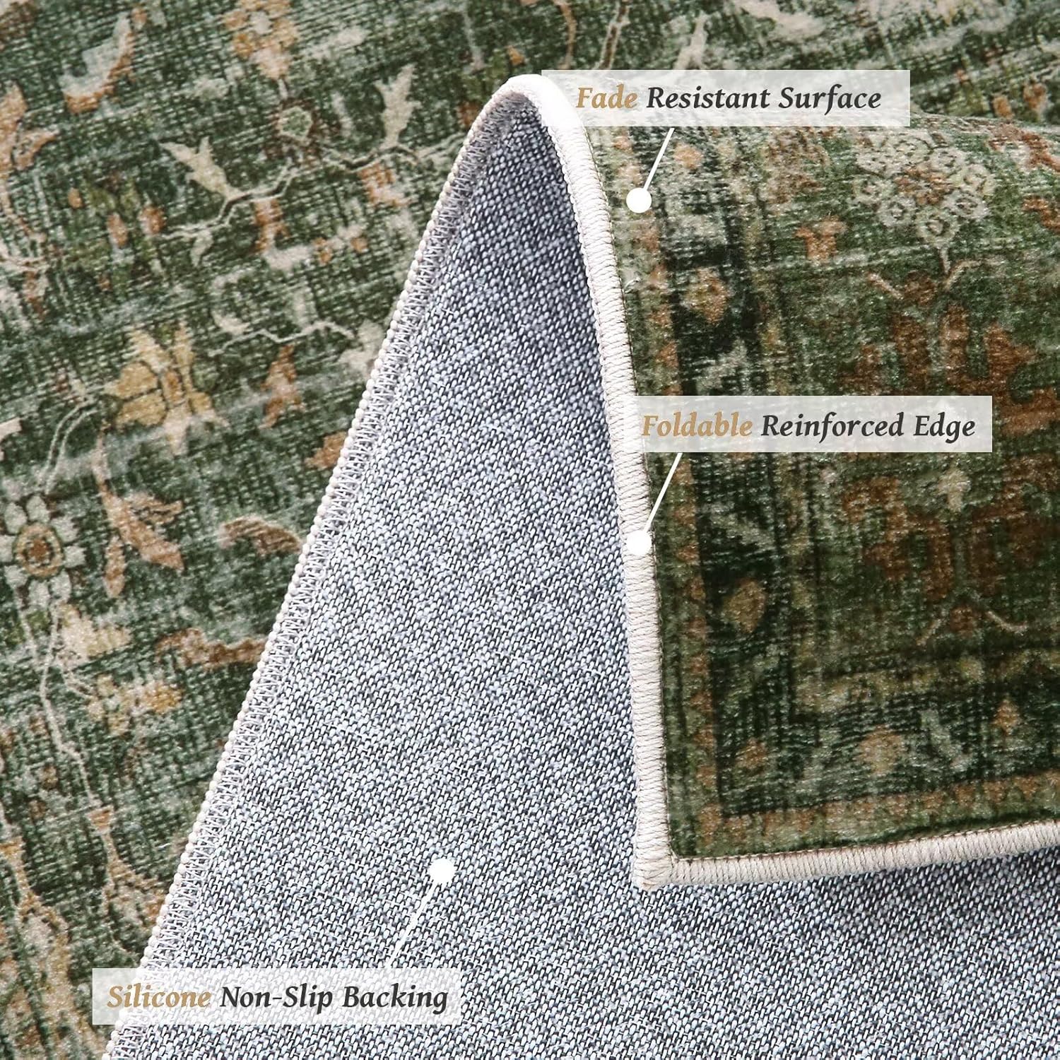 Washable 6x9 Area Rugs for Living Room, BoHo Non-slip Silicone Backing Large Rug for Bedroom Dining Room Nursery Office, 0.3" Neutral Oriental Throw Carpet with 0.16" Cushioning Pad, Grass Green/Multi