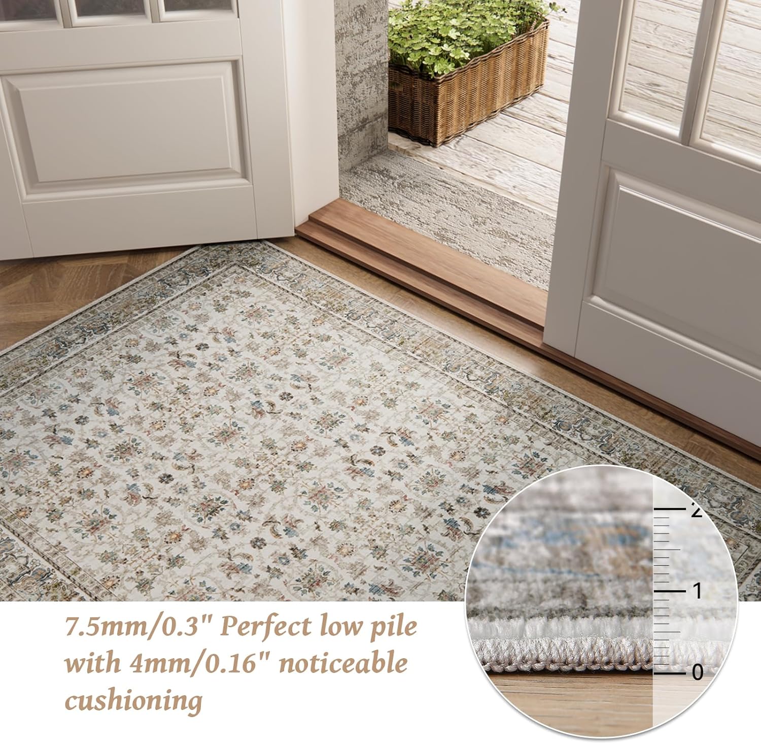 Washable 9x12 Area Rugs for Living Room, Boho Non-Slip Silicone Backing Rugs for Bedroom Dining Room Nursery Office, 0.3" Neutral Oriental Throw Carpet with 0.16" Cushioning Pad, Cream/Multi