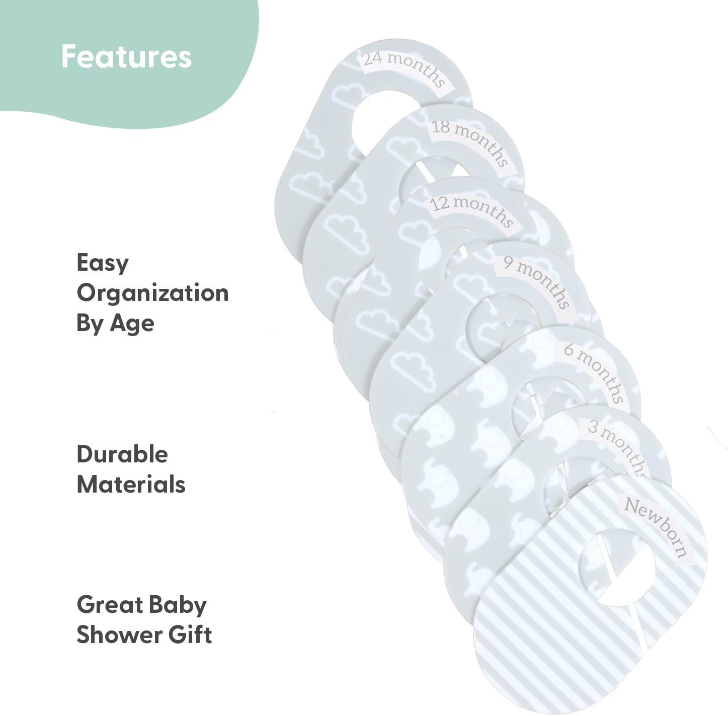 The Peanutshell 10 Pack Baby Closet Dividers Boy or Girl, Baby Clothes Organizer, Toddler Hanger, Closet Size Dividers, Nursery Organization for Clothing Storage, Newborn to 2T; Elephant Nursery Decor