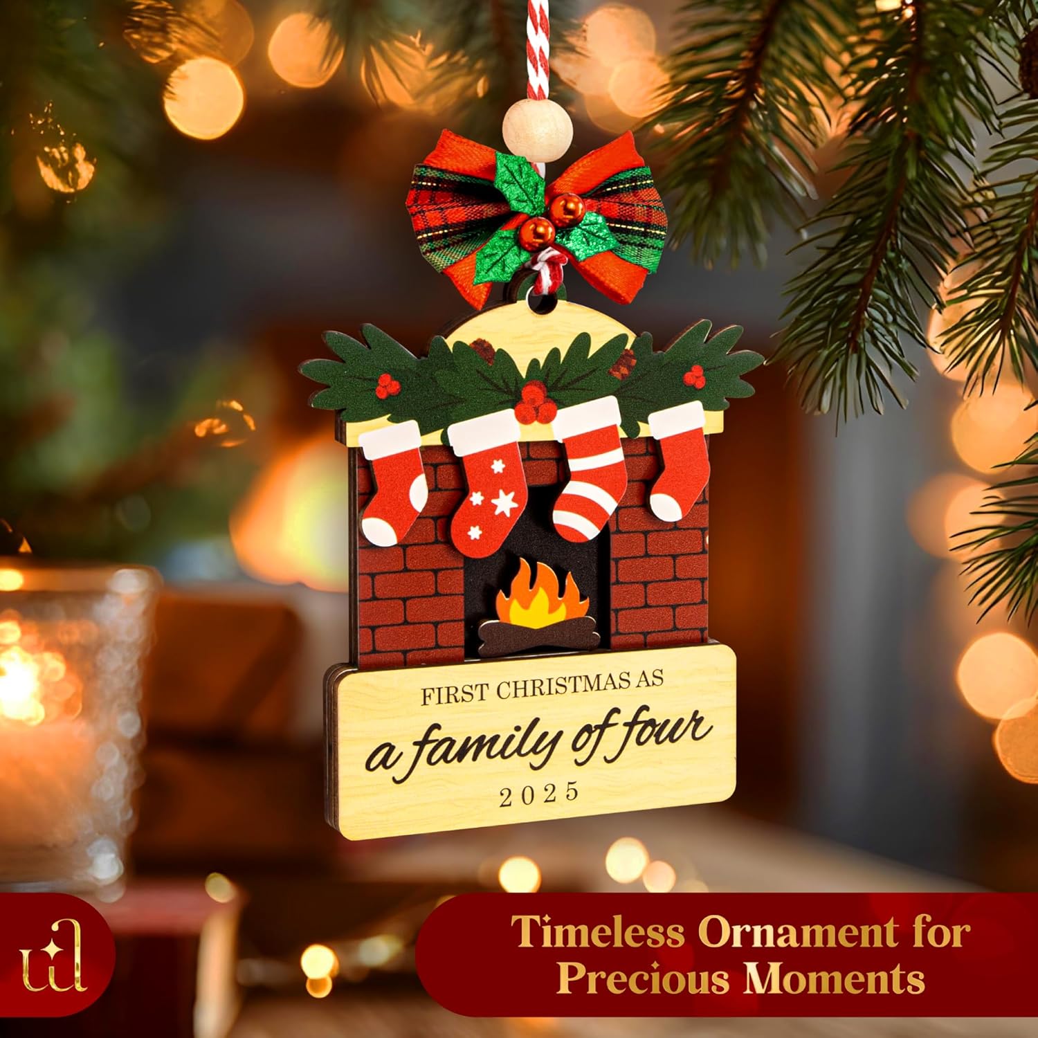- High Quality: Made from durable wood with detailed design, this family of four christmas ornament doubles as a family xmas ornament and first christmas ornament 2025, bringing warmth and charm to your holiday decorations.