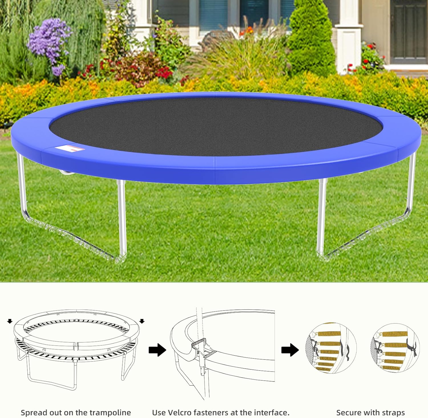 • 【Rich Configuration】Our trampoline mats come in four colors: blue, black, purple, and gray, and five sizes: 10ft, 12ft, 14ft, 15ft, and 16ft, to meet the needs of most trampolines.