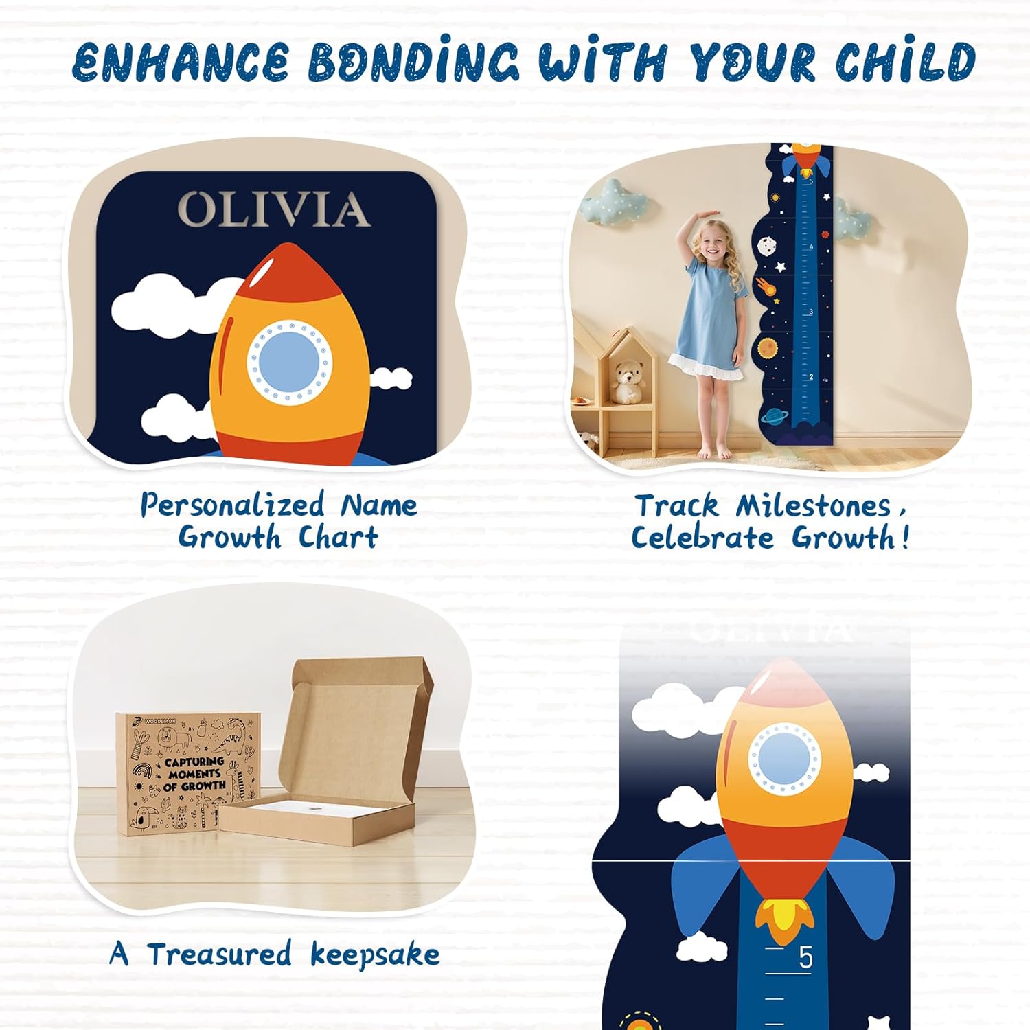 - Personalized Name Growth Chart: The height ruler wall tape can customize the name, measurement scale (centimeters or inches) for a personal touch, attracting the baby's attention. Kids height wall chart creates precious childhood memories, making measuring height interesting and not boring.
