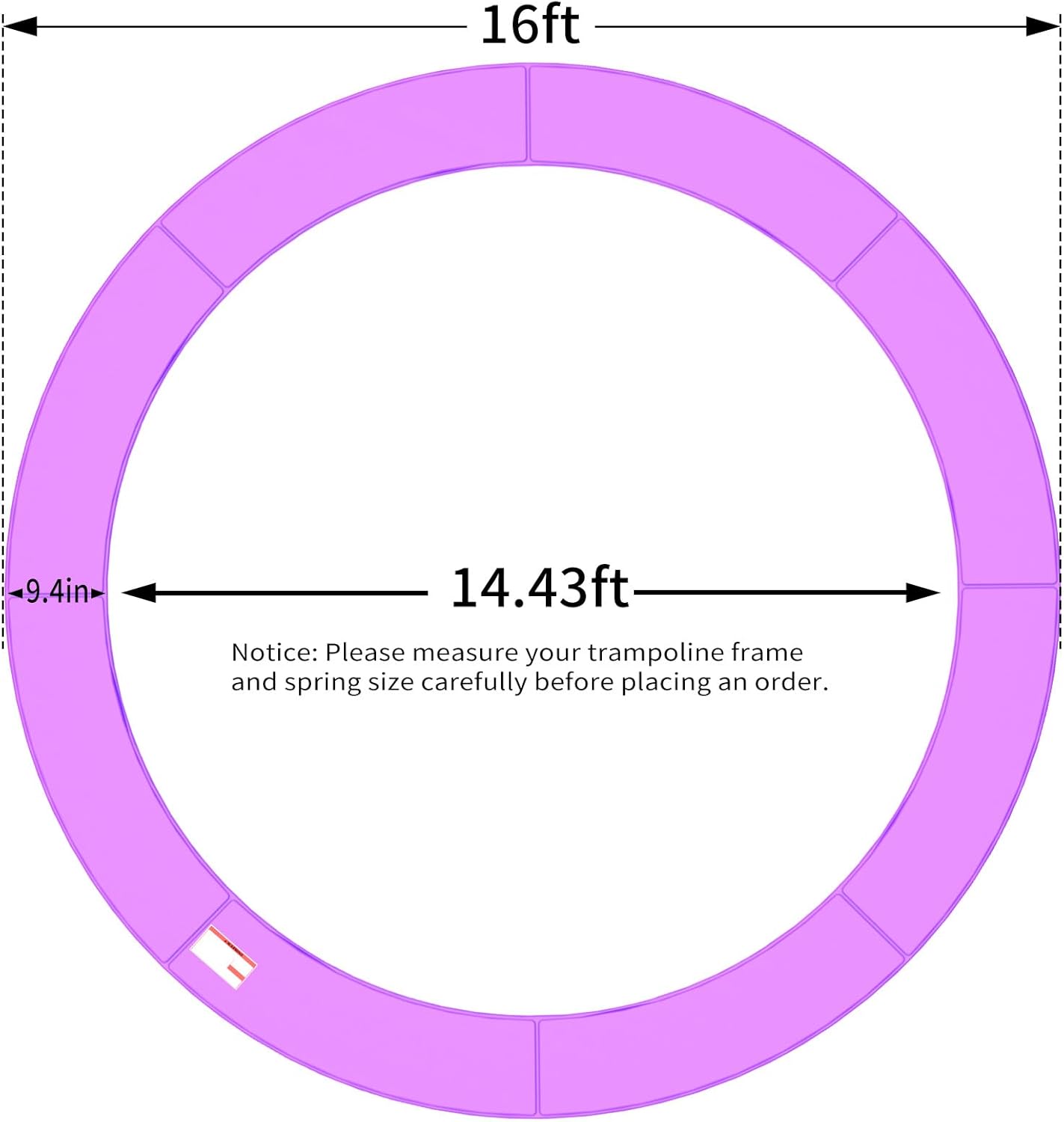 - 【NOTE】Please confirm the size of your trampoline before purchasing the safety pad, this trampoline pad is only suitable for 16FT trampolines with a round frame