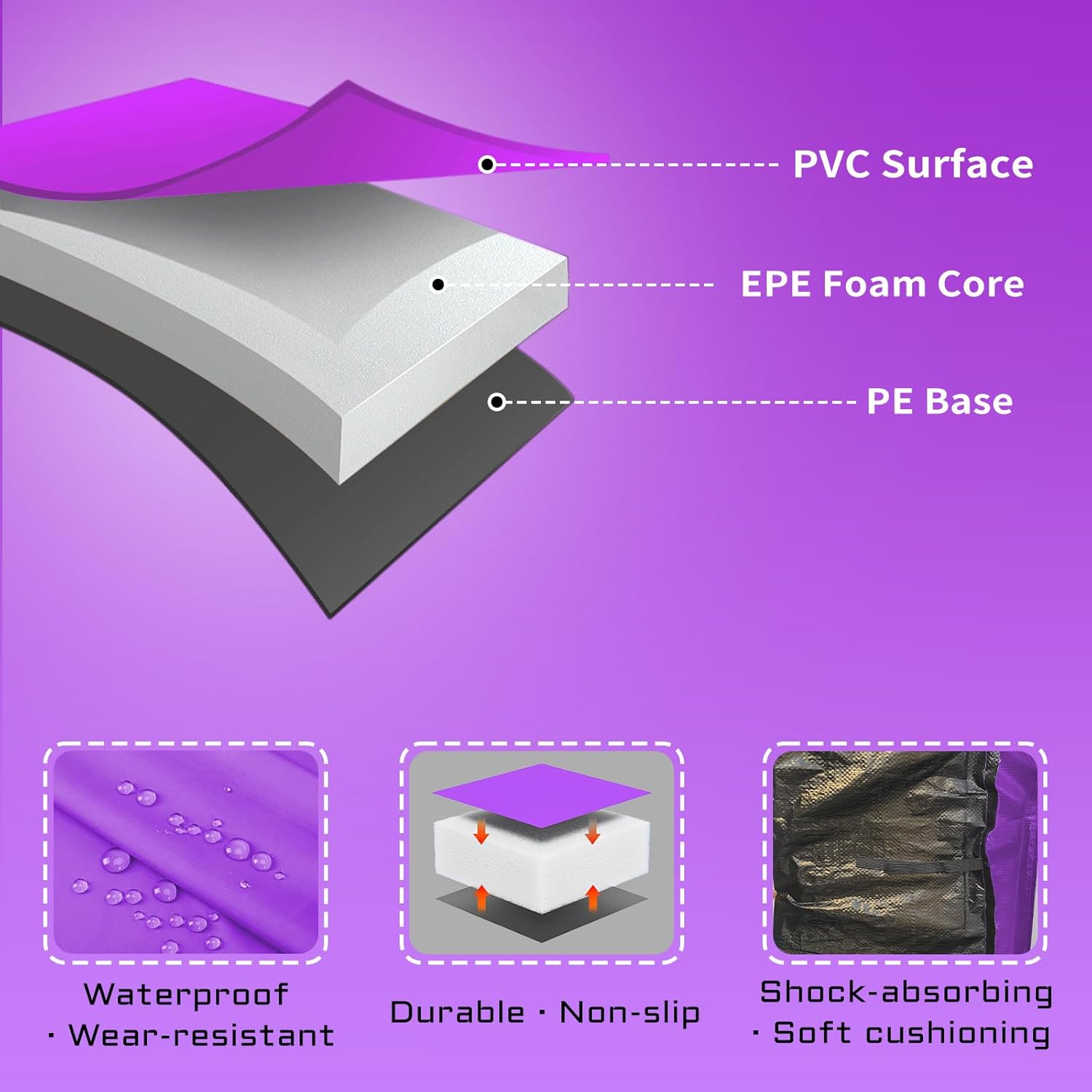- 【PREMIUM MATERIAL】The outer layer shell is manufactured with high density PVC on top and heavy-duty PE on the bottom, 0.6 inch high-density EPE foam inside